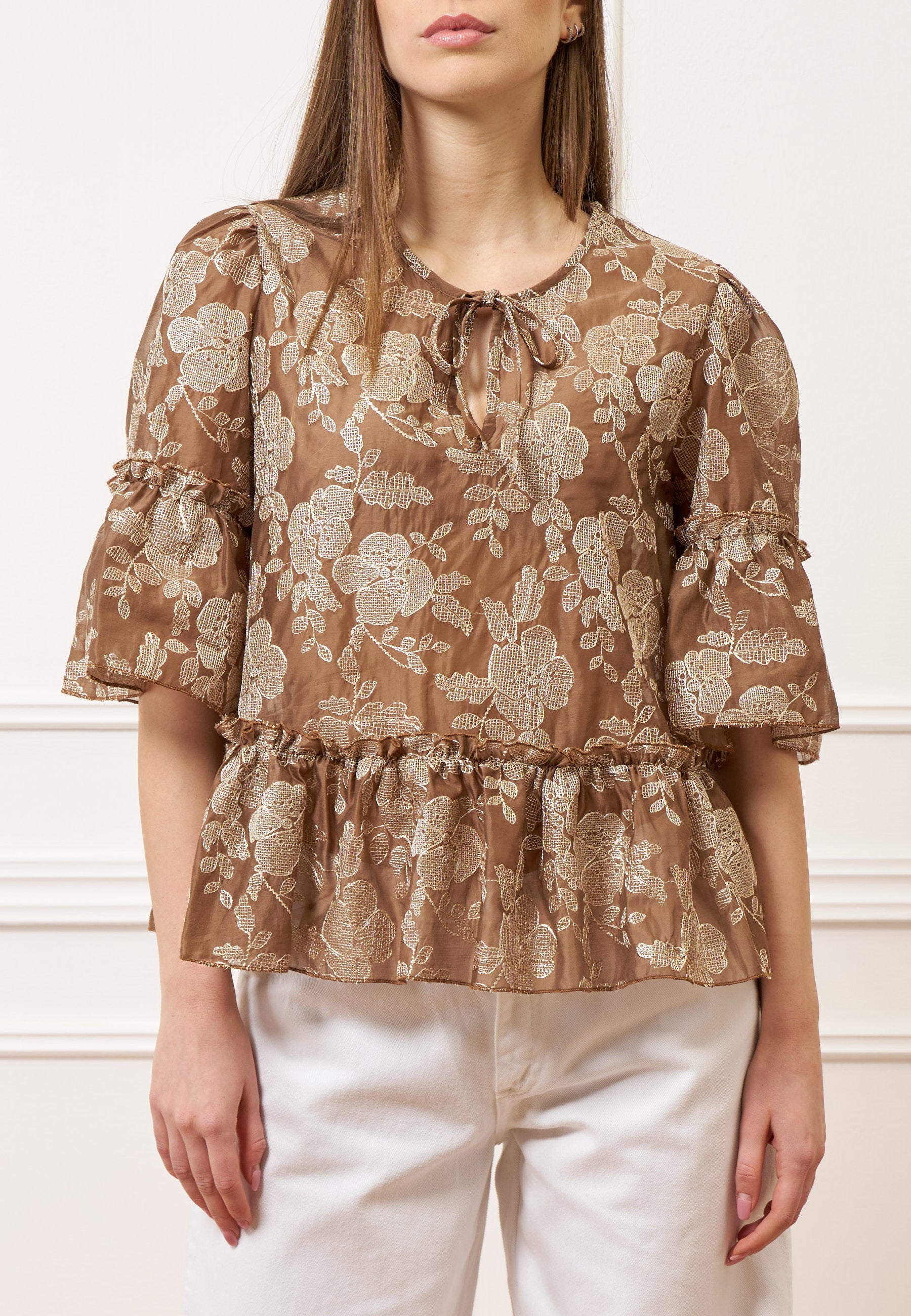 Blusa ricamata con balze
