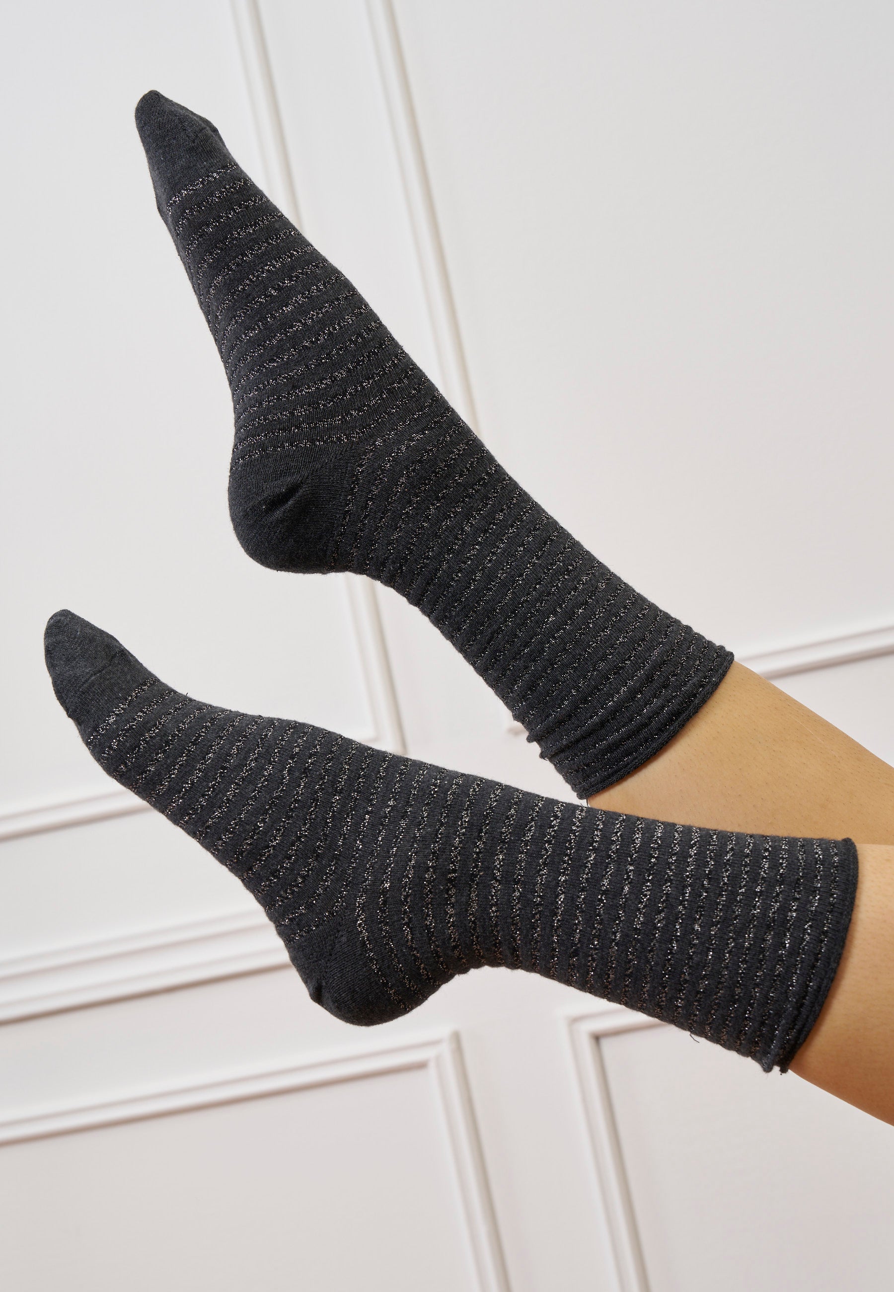 Regalano un tocco luminoso grazie alle righe decorate con filo lurex su base morbida.