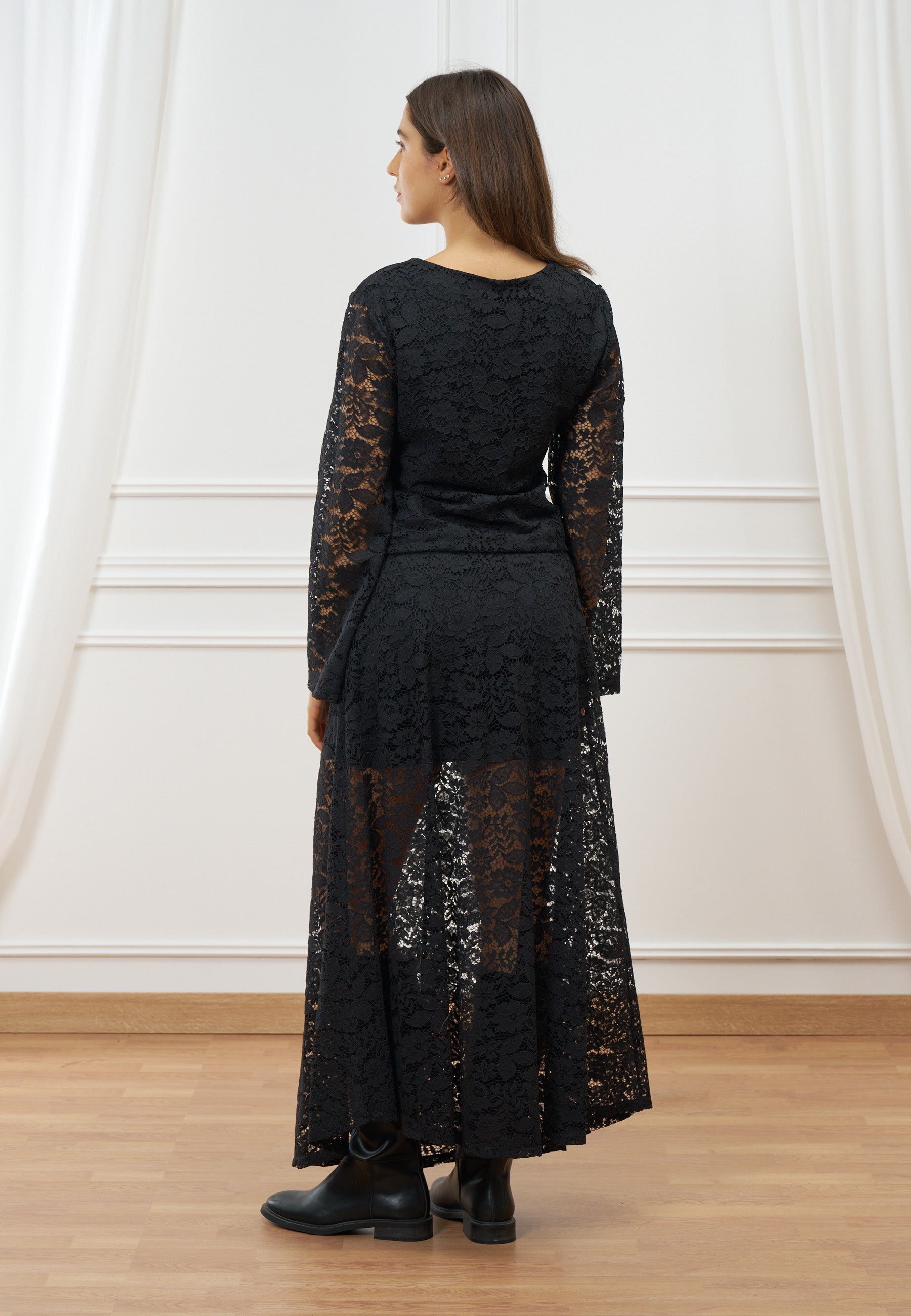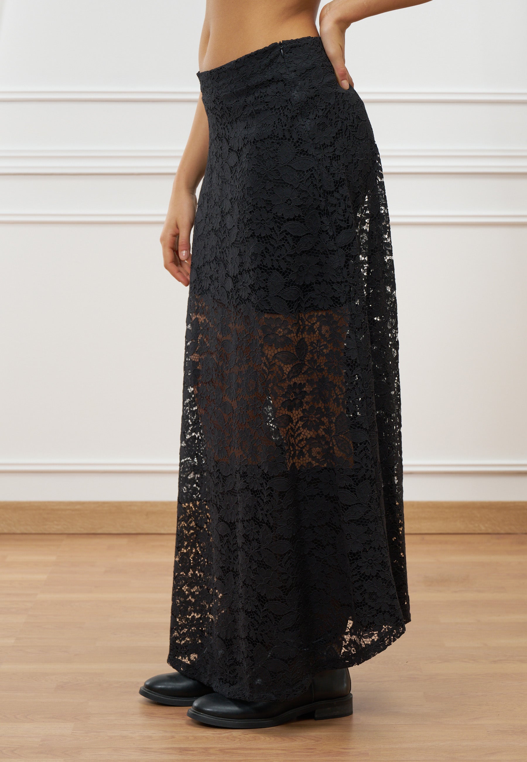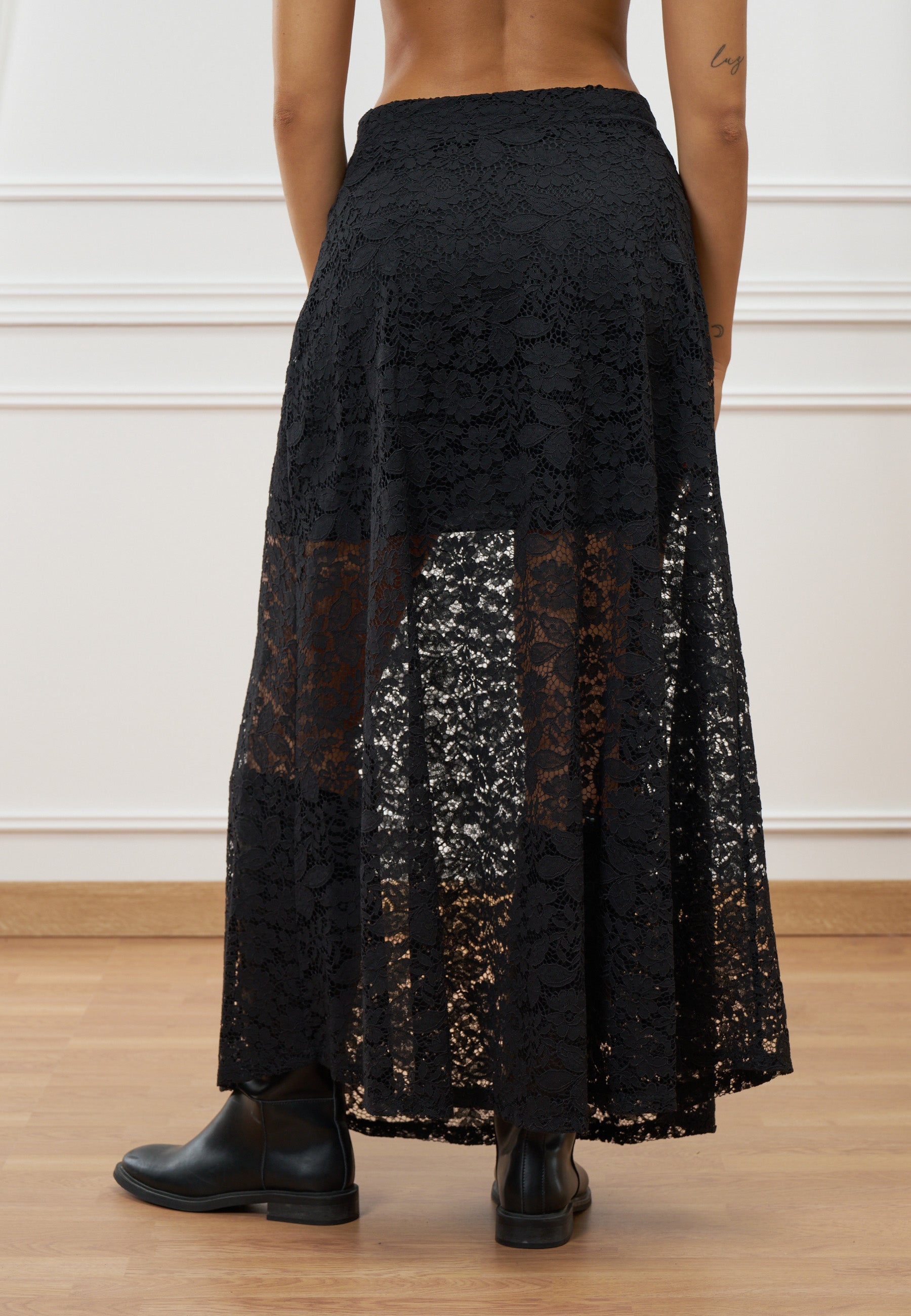 Femminile e raffinata, questa gonna lunga in pizzo combina eleganza e leggerezza in un design che valorizza la silhouette.