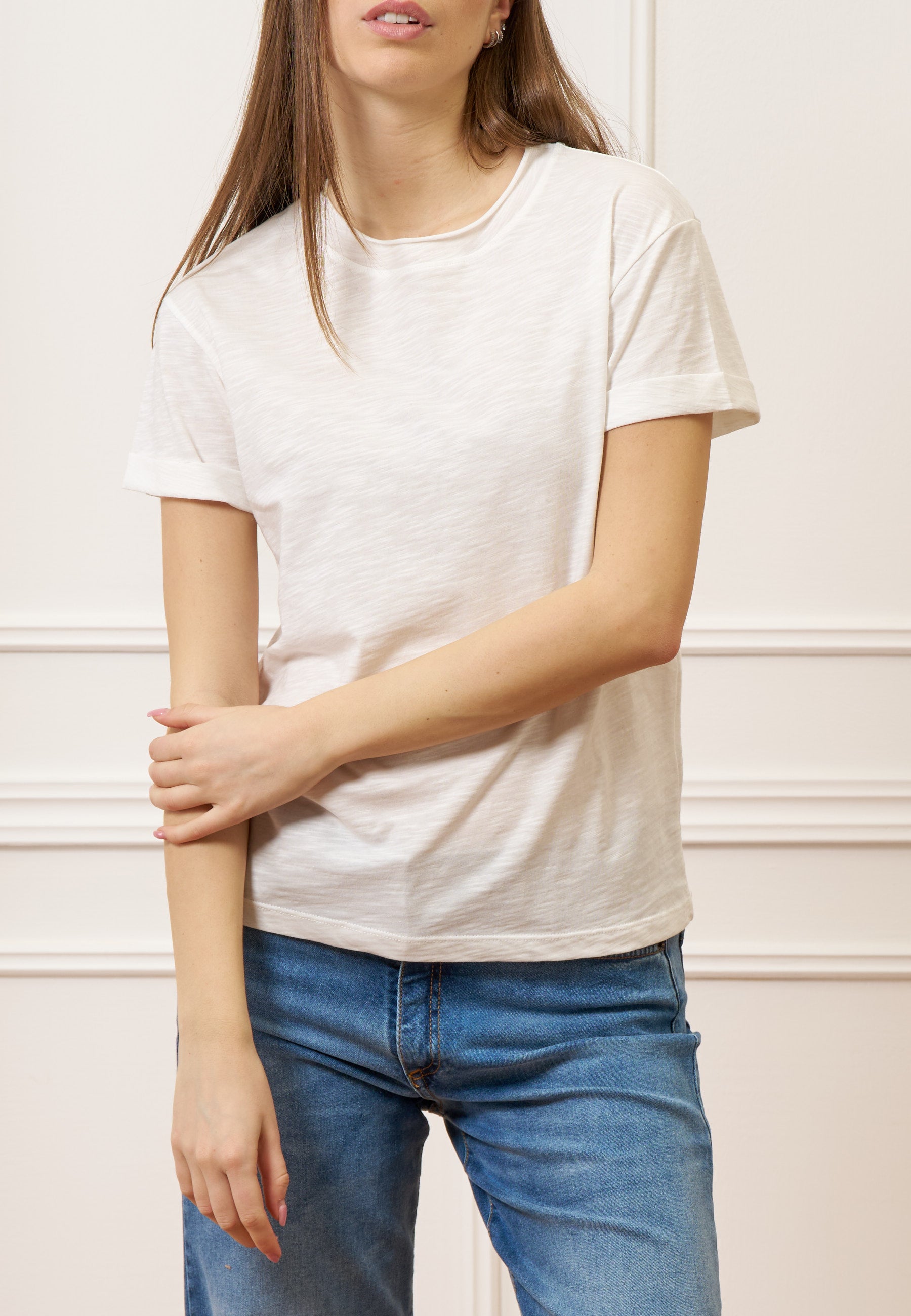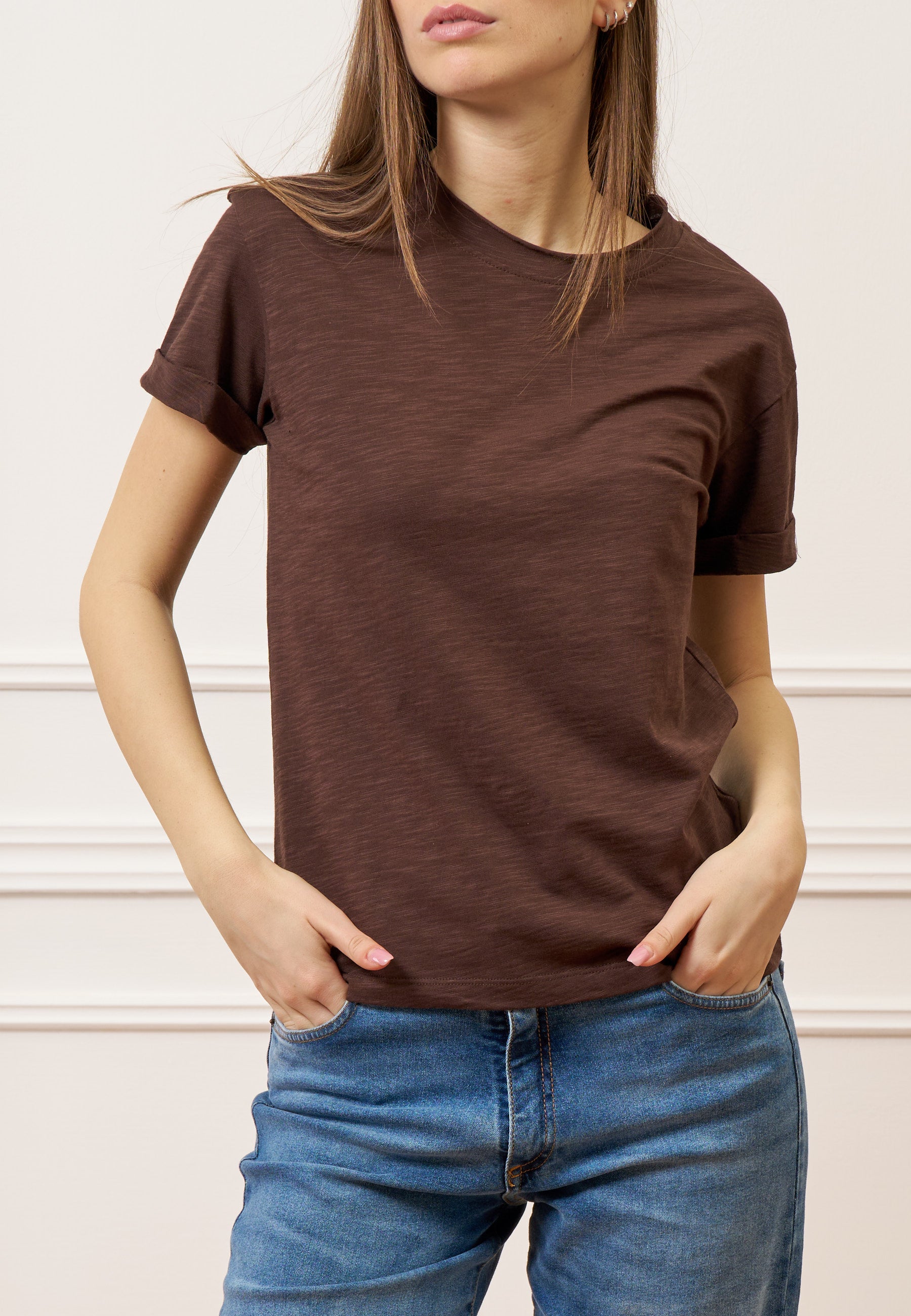 • Maniche corte con risvolto