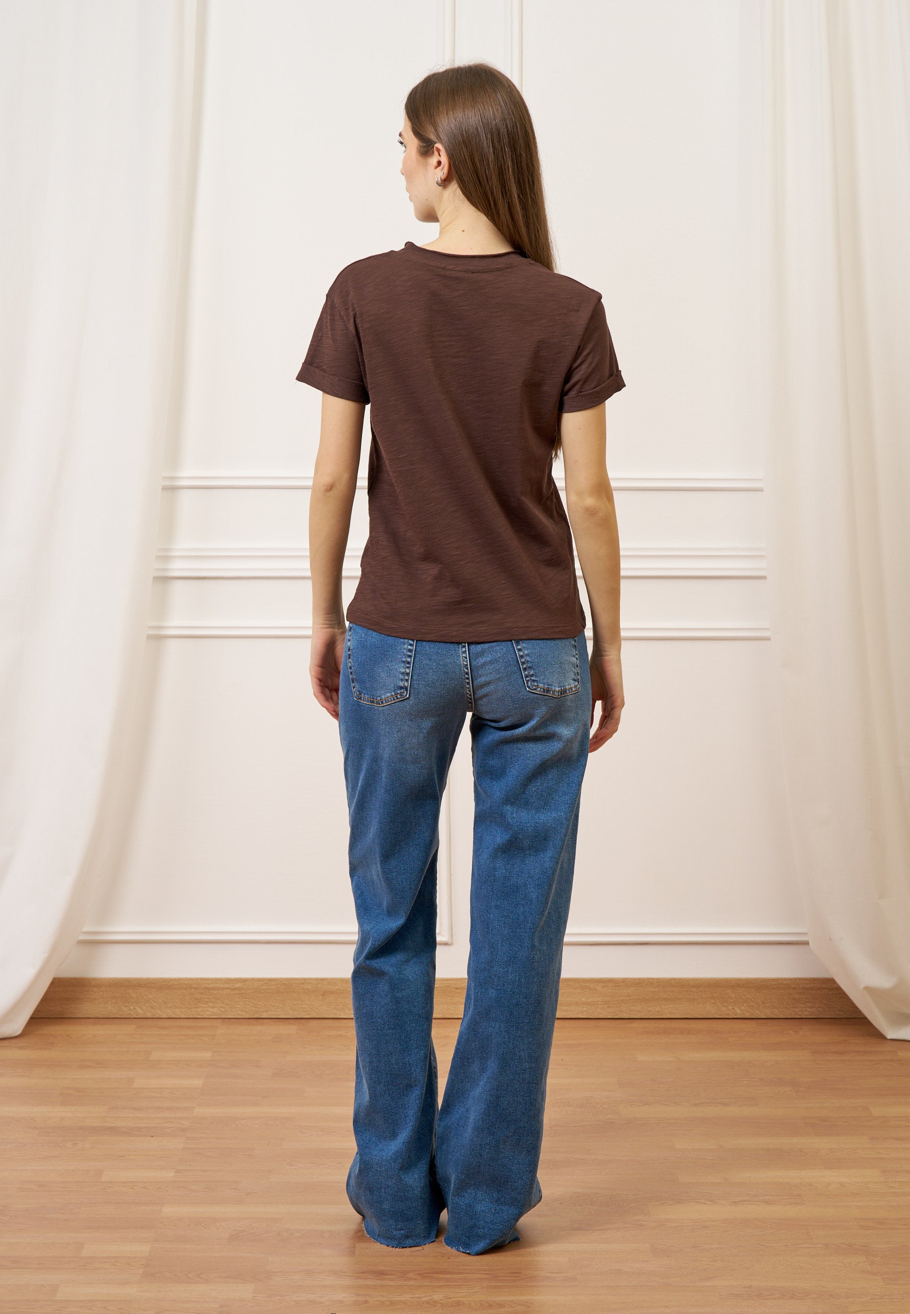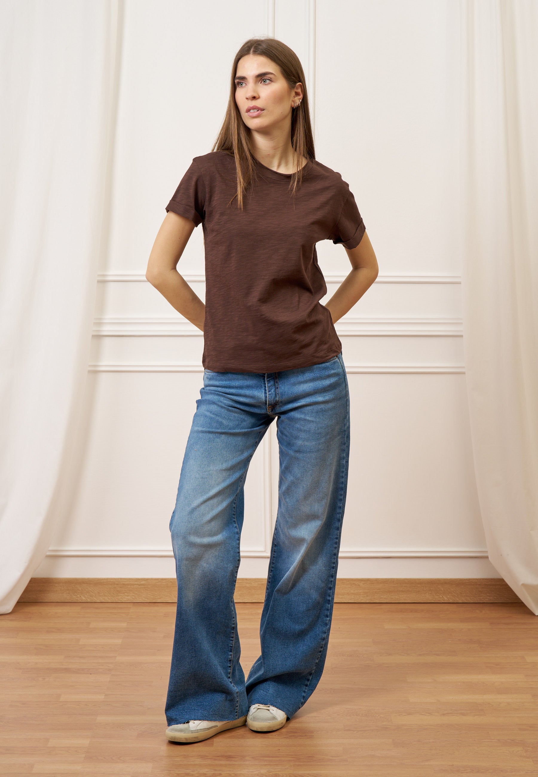 Design pulito ed essenziale definisce questa t-shirt in jersey di cotone fiammato, leggera e piacevole al tatto.