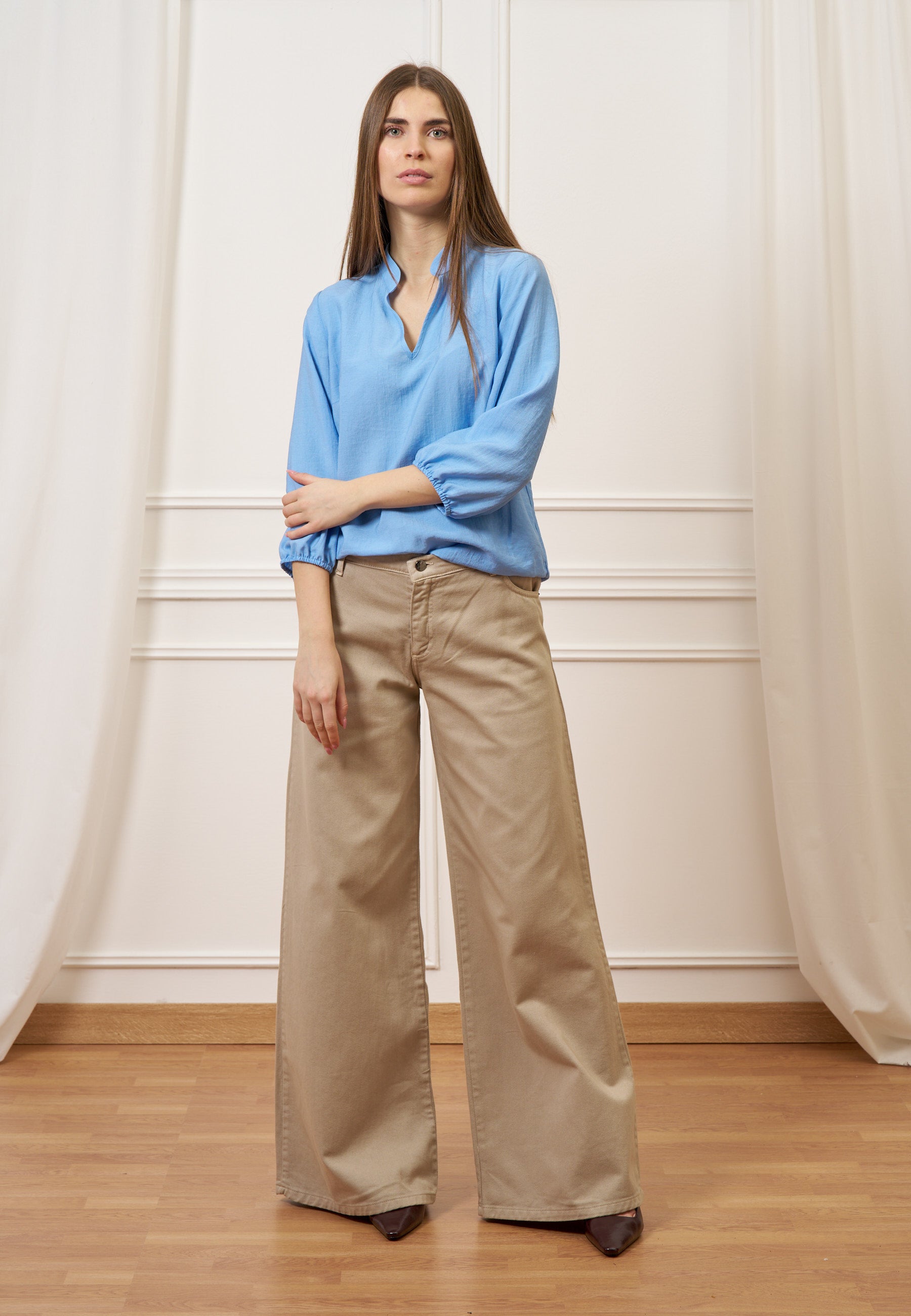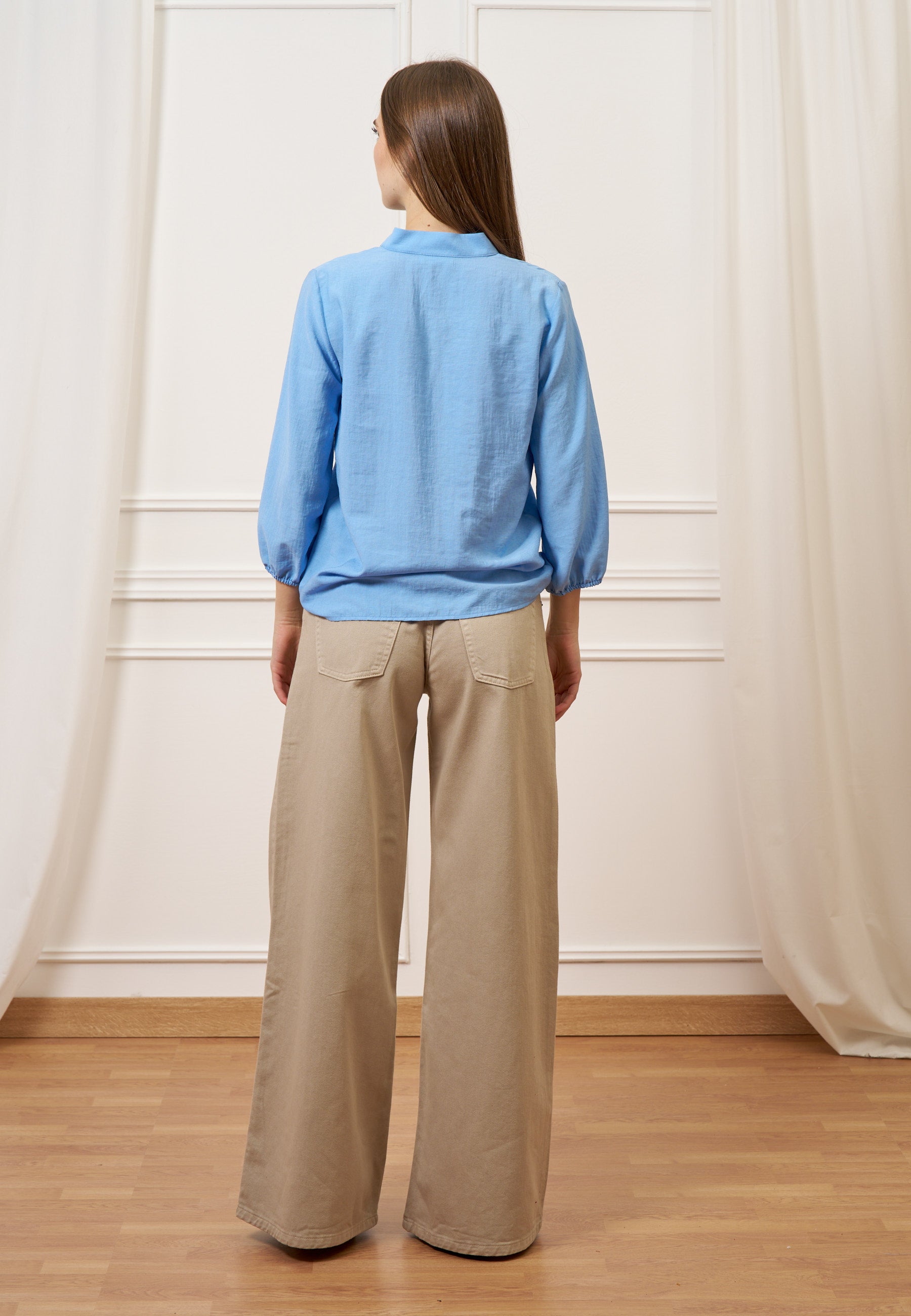 Camicia leggera e raffinata, dal tessuto leggermente stropicciato che regala movimento e unicità a ogni look.