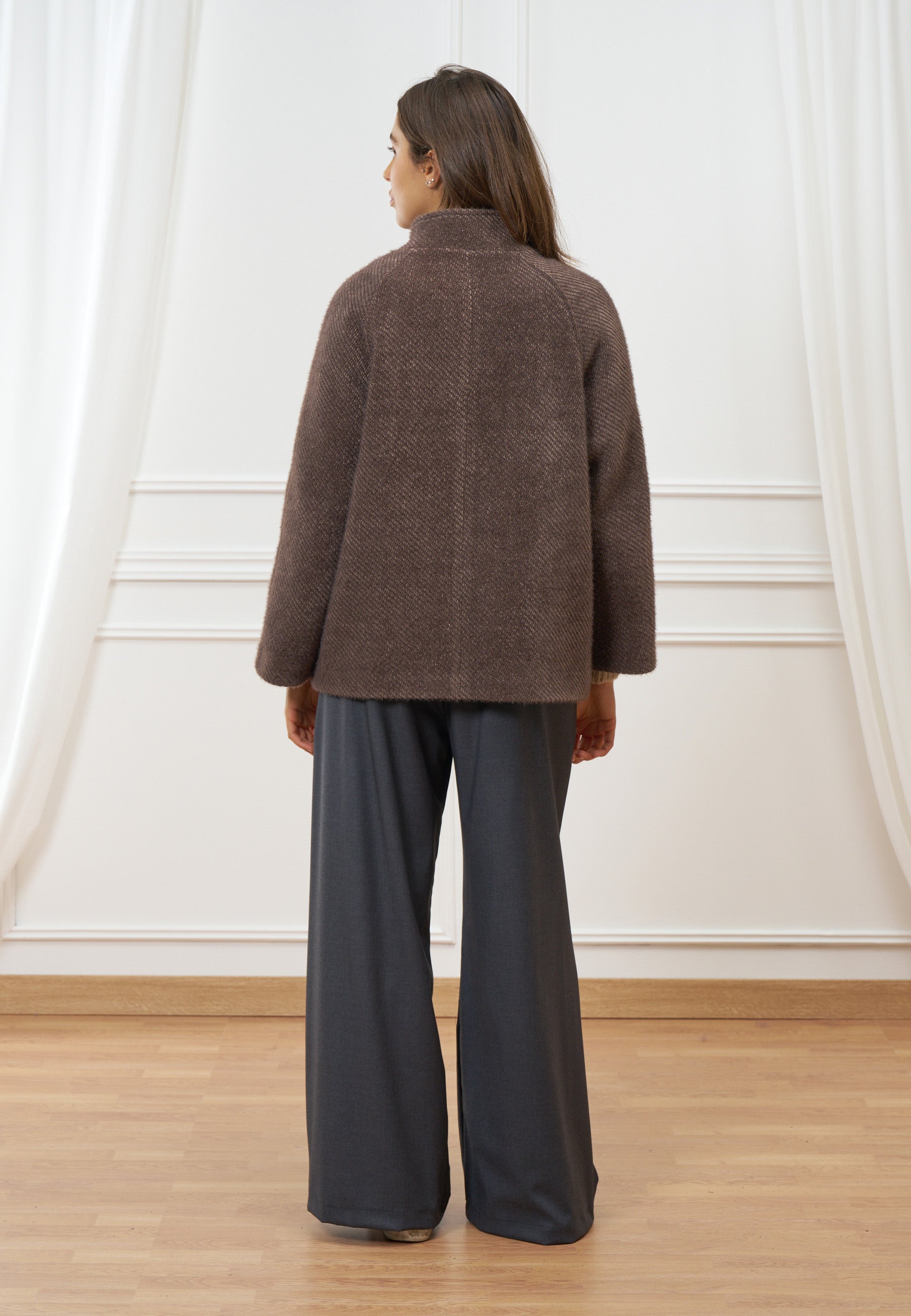 Calore e raffinatezza caratterizzano questo cappotto dalla linea svasata e contemporanea.