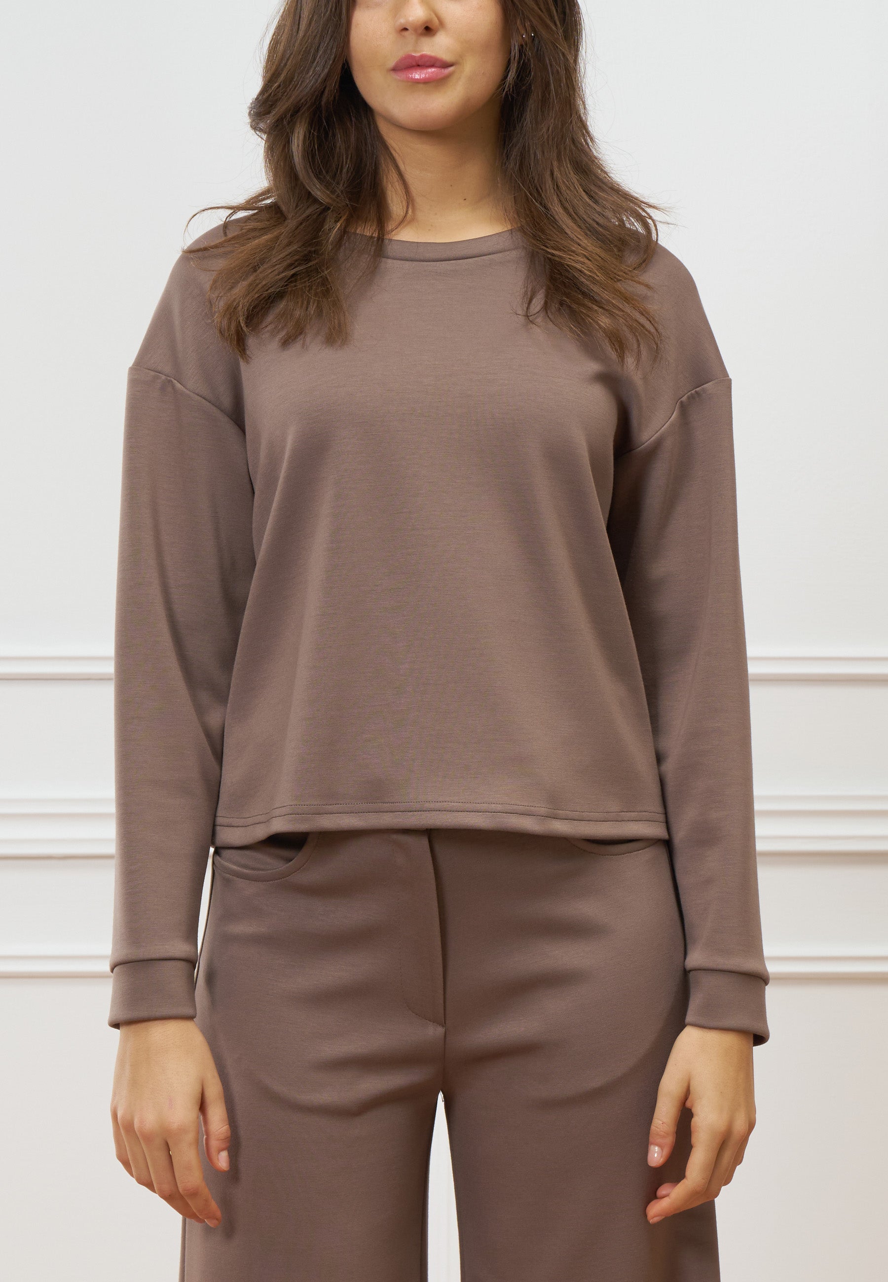Pulizia estetica e dettagli femminili si incontrano in questa felpa dal design moderno e dalla linea confortevole.