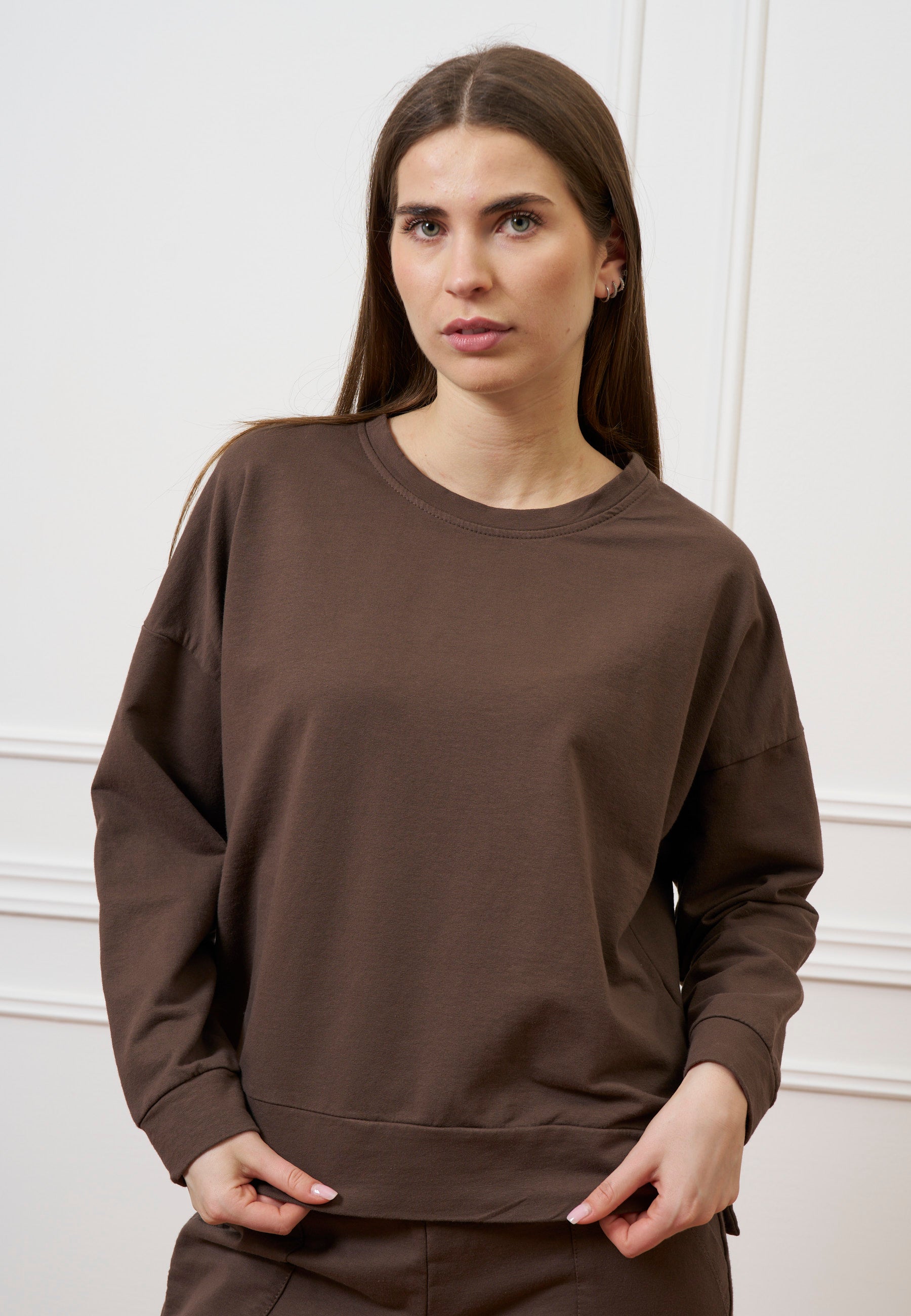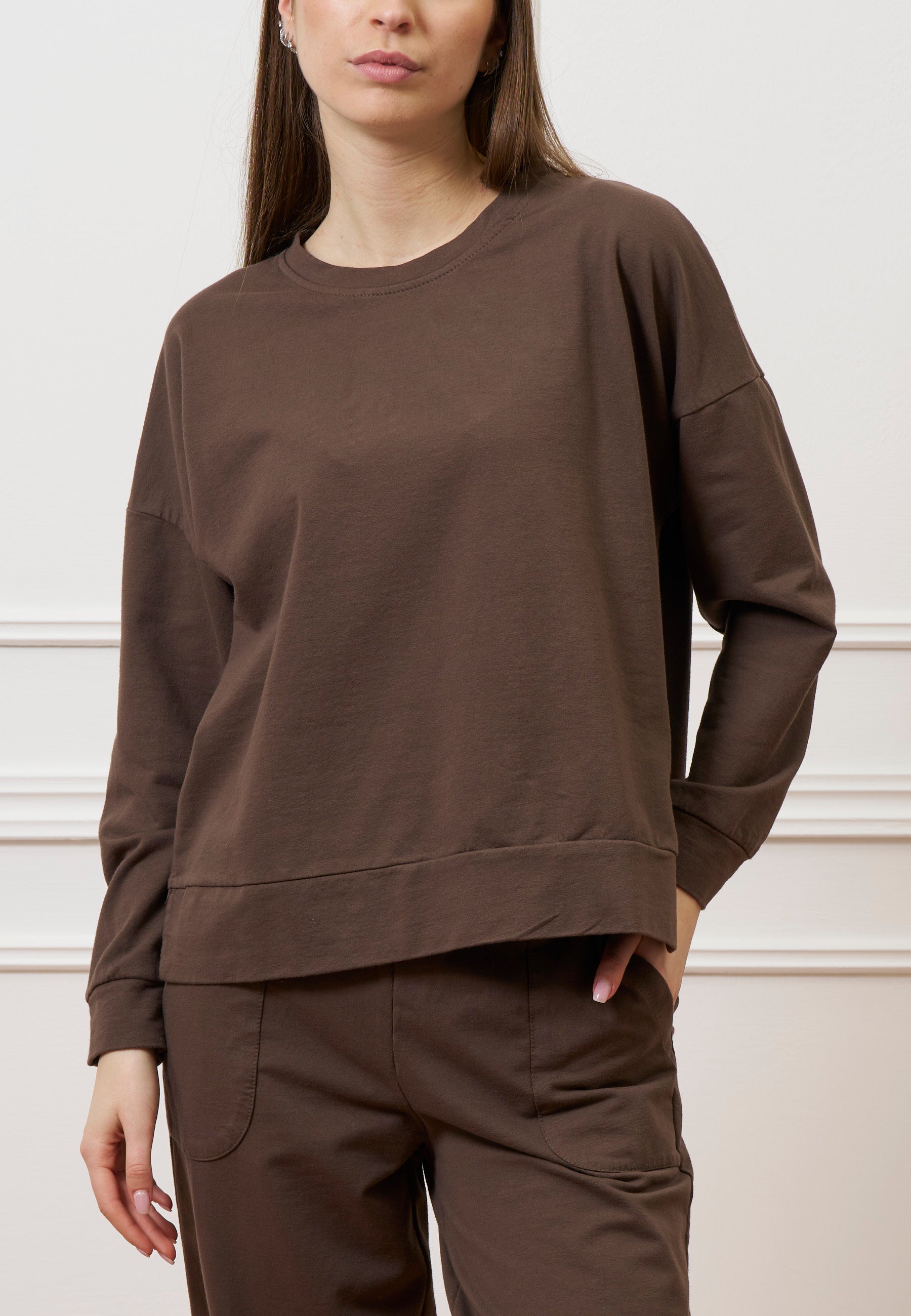 Felpa scatola con spacchi laterali - MARRONE