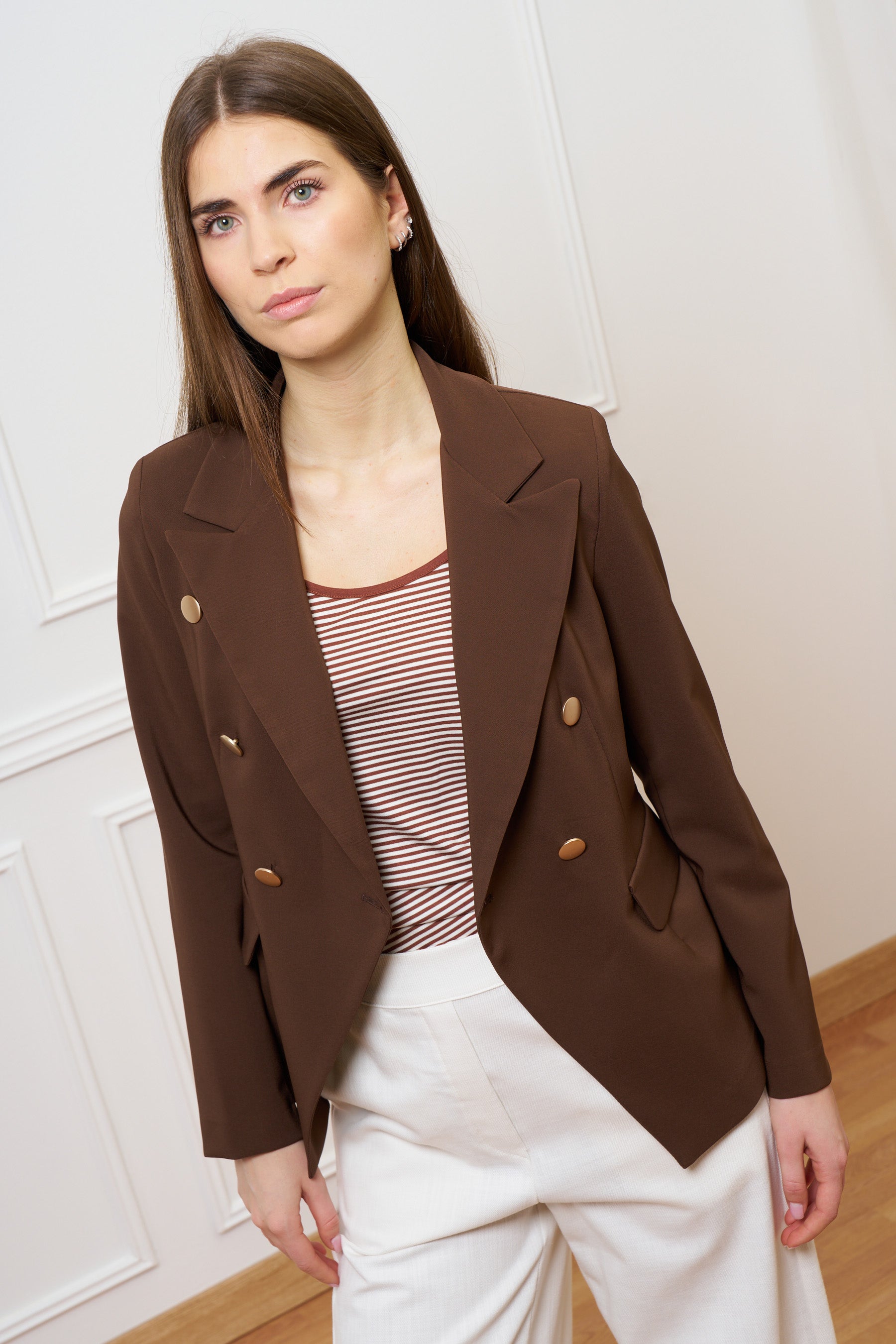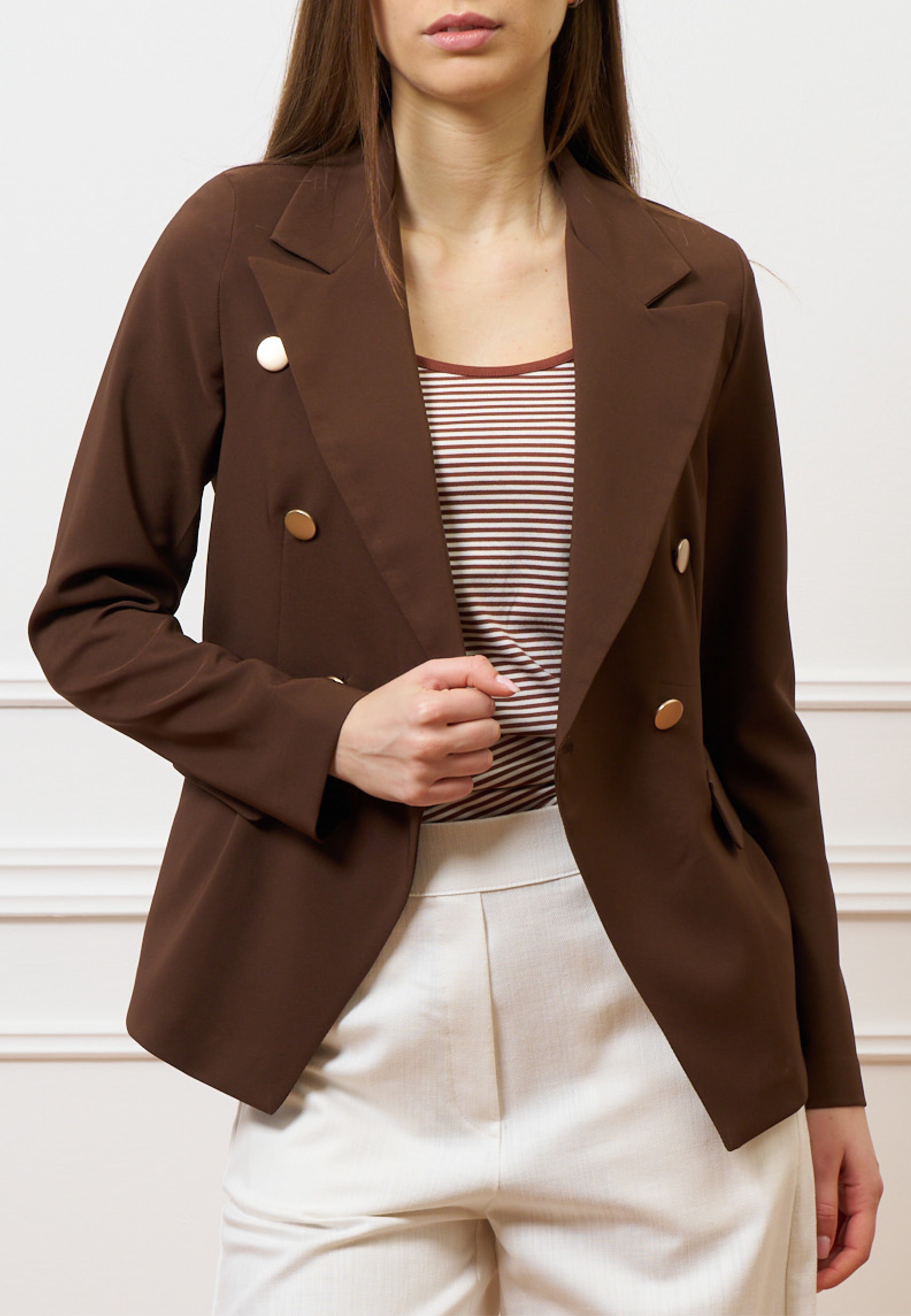 Giacca doppiopetto in tessuto tecnico - MARRONE