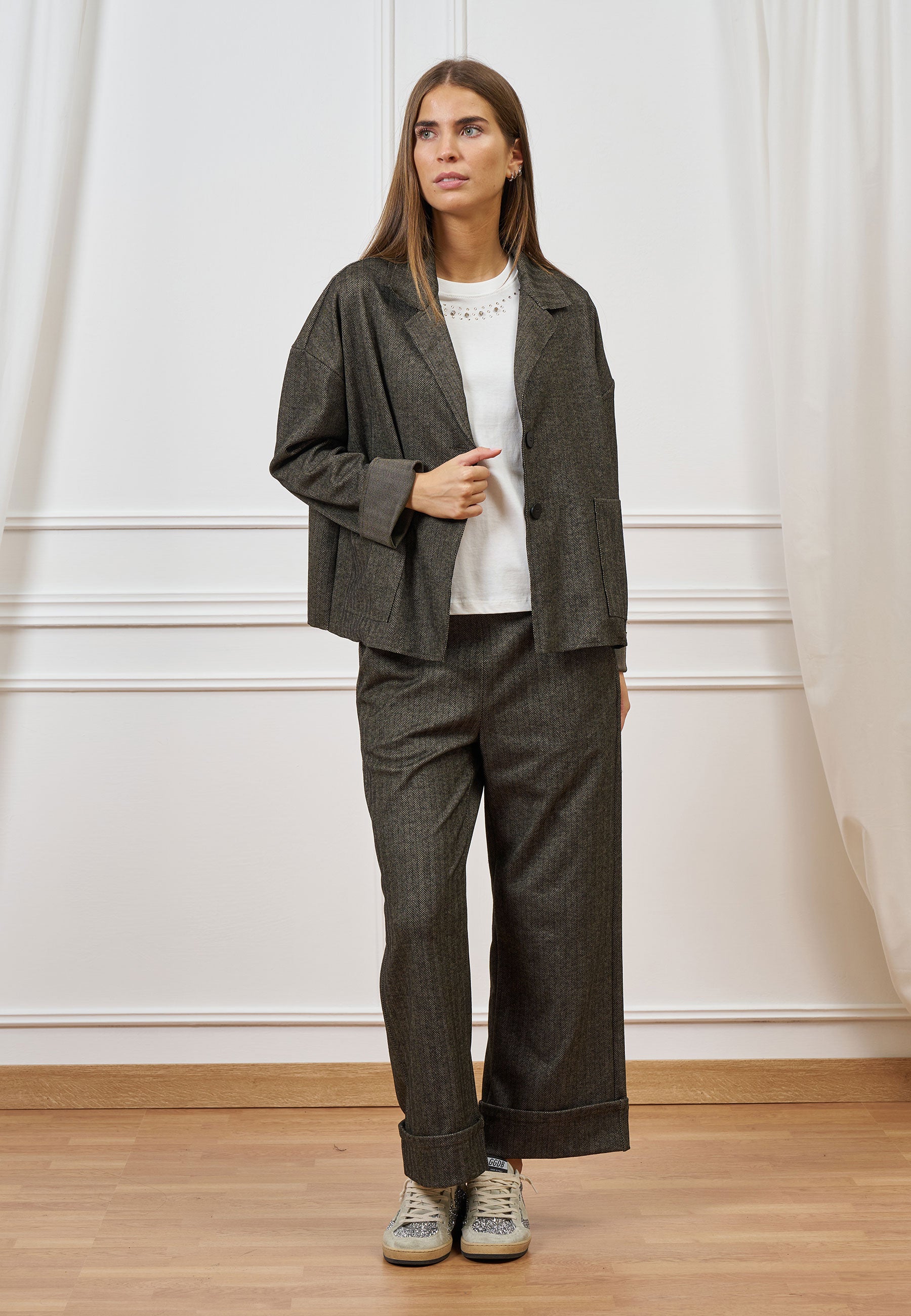 Realizzata con cura in Italia, è una giacca raffinata e versatile, perfetta da indossare con il tuo jeans preferito o con il pantalone coordinato per un look casual e contemporaneo.