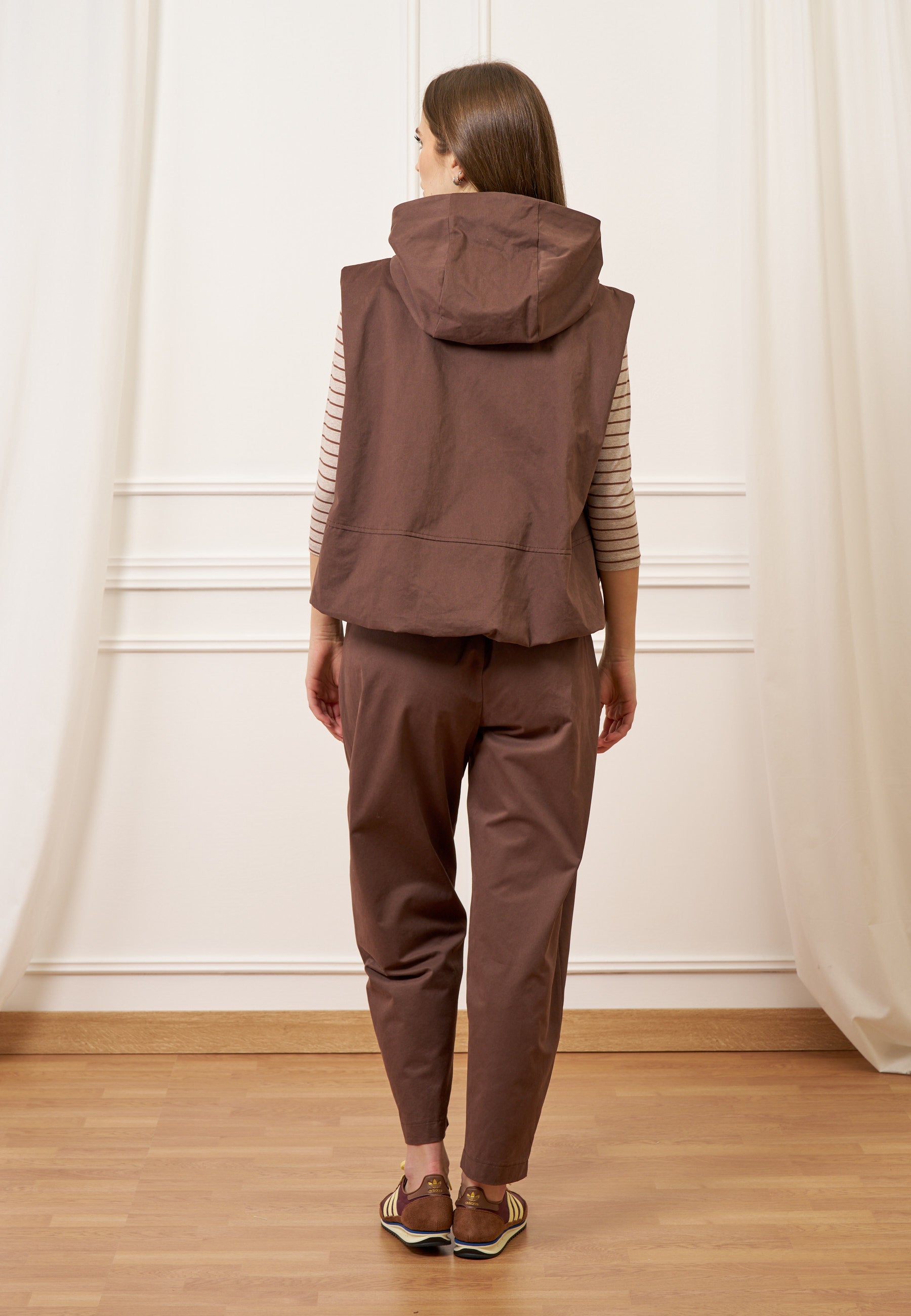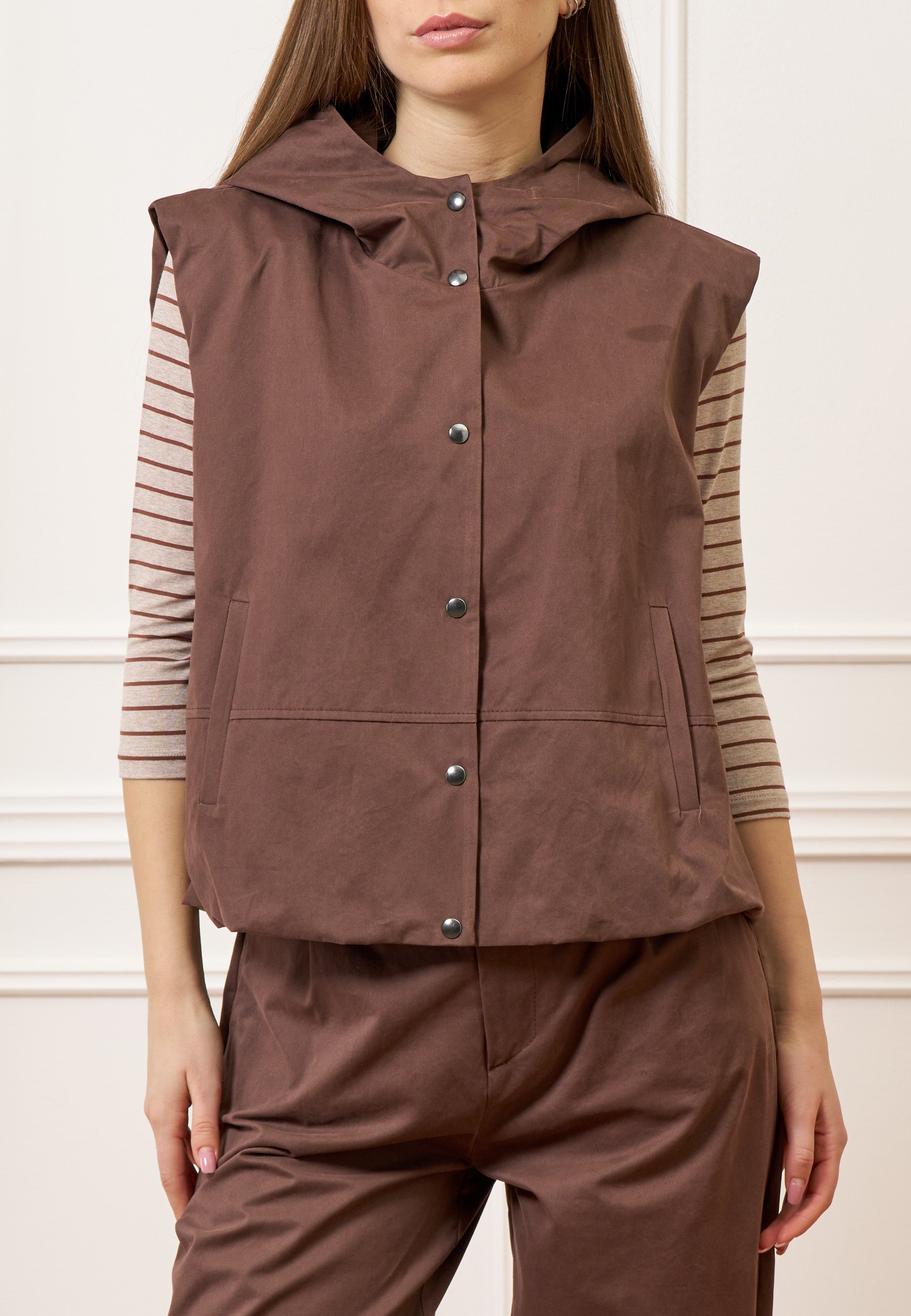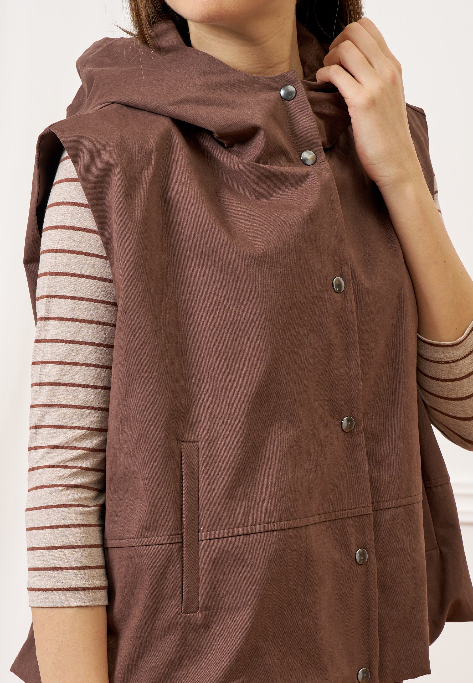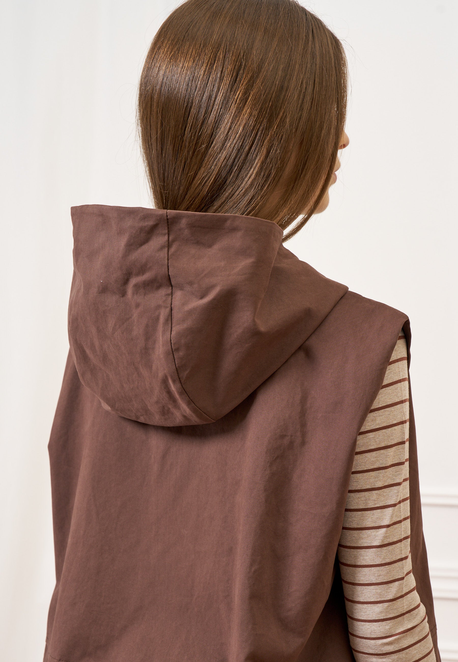 Giubbino smanicato con cappuccio - MARRONE