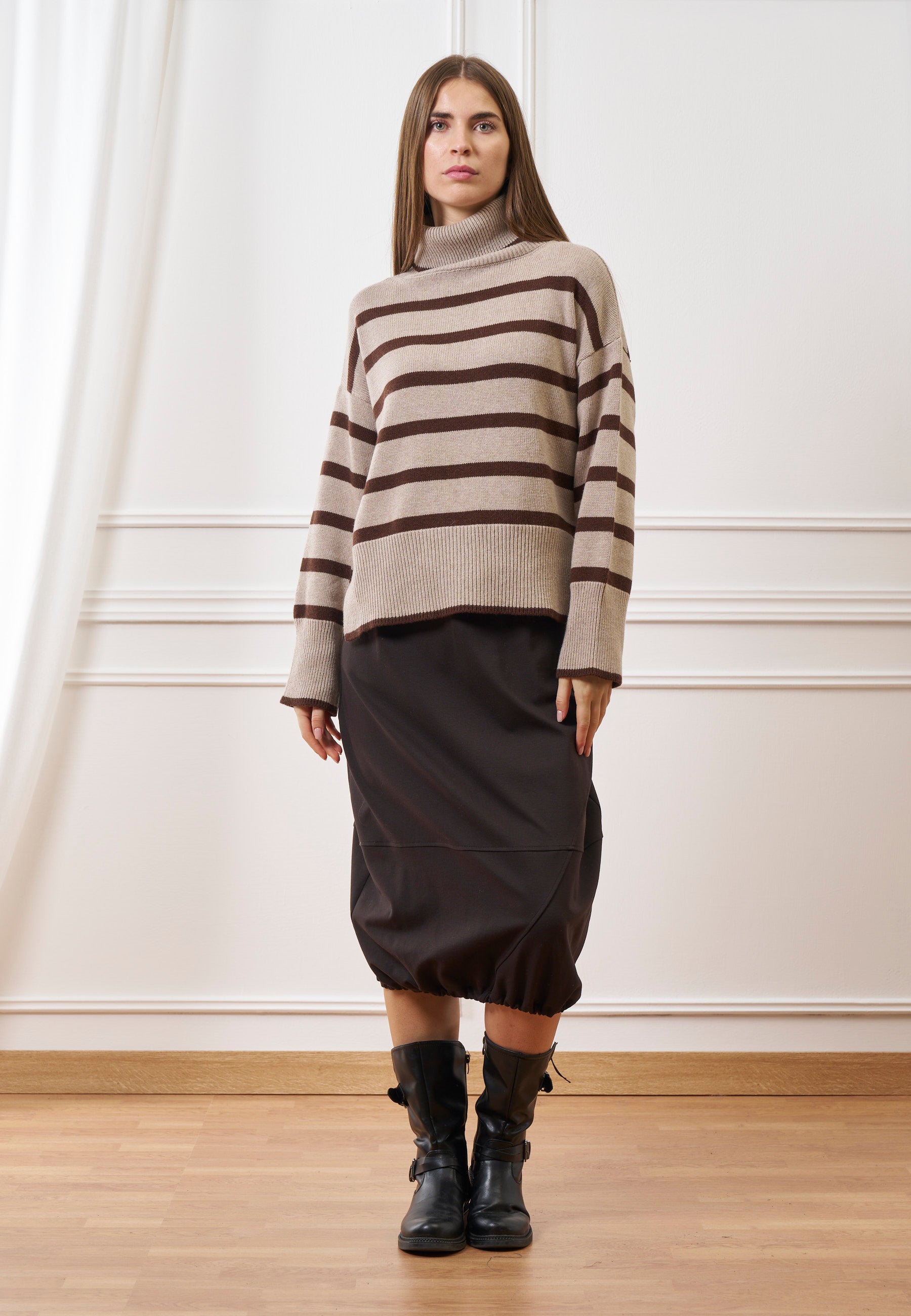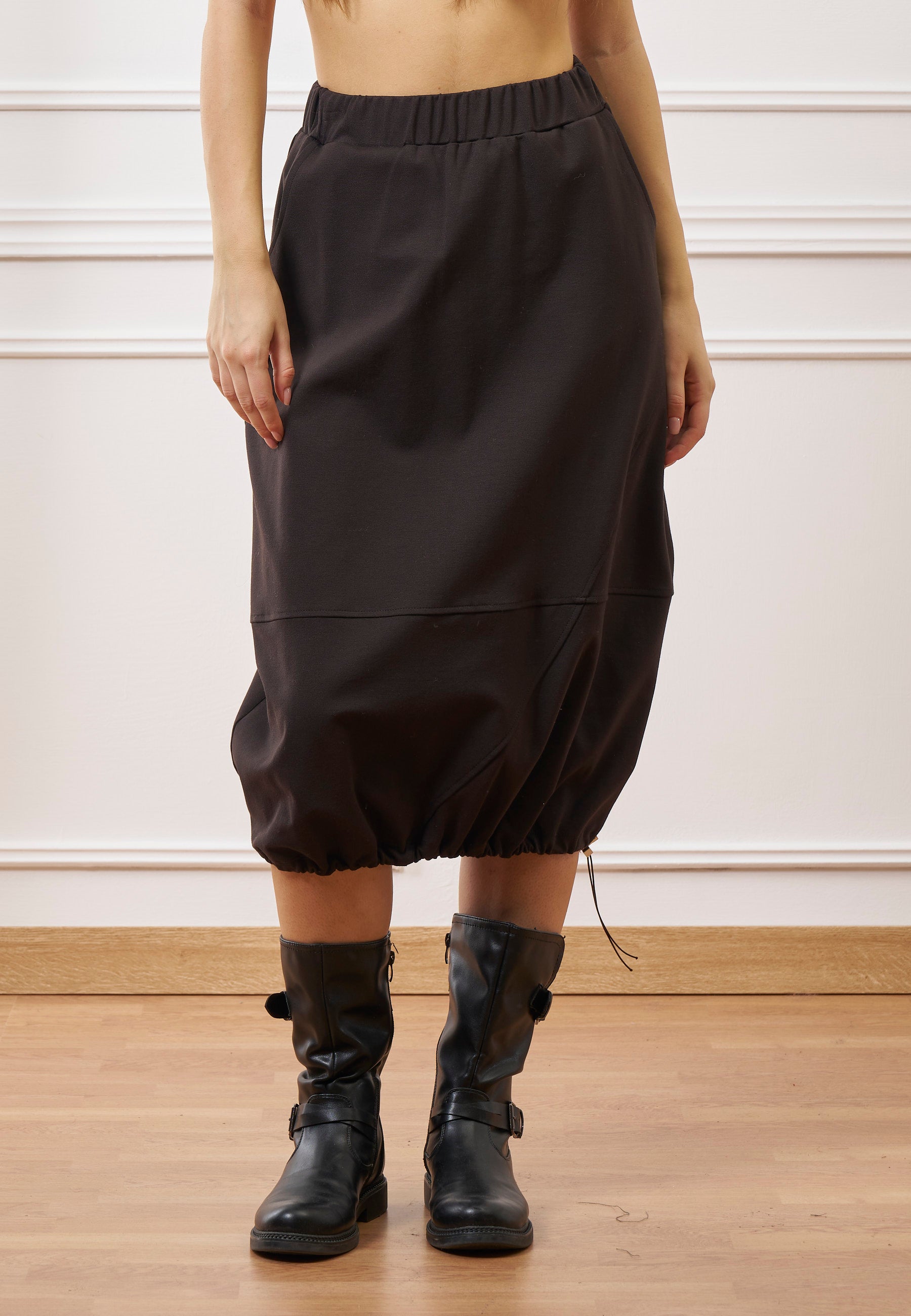 Femminile e strutturata, questa gonna unisce eleganza e comfort grazie alla linea morbida e alla coulisse sul fondo.