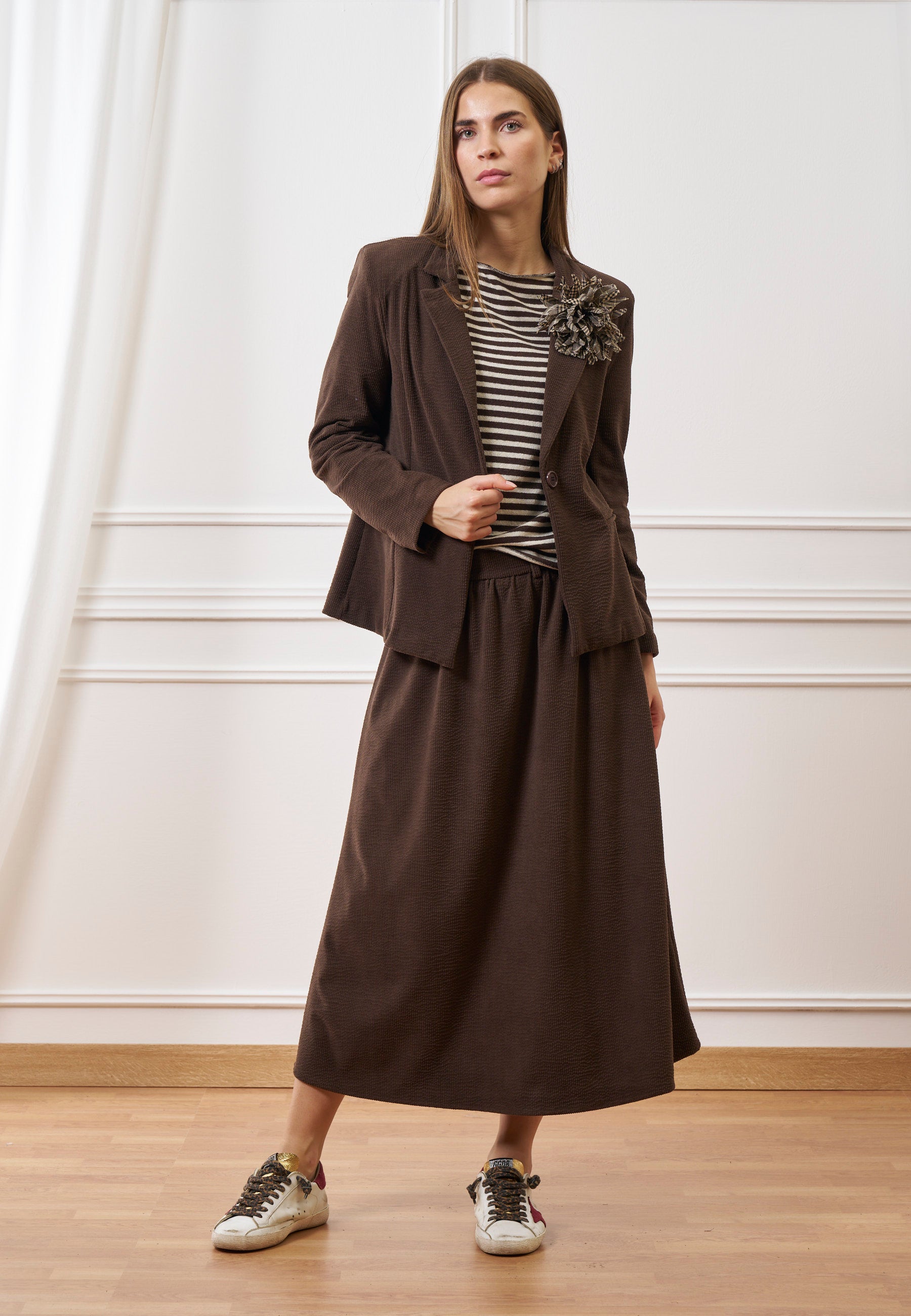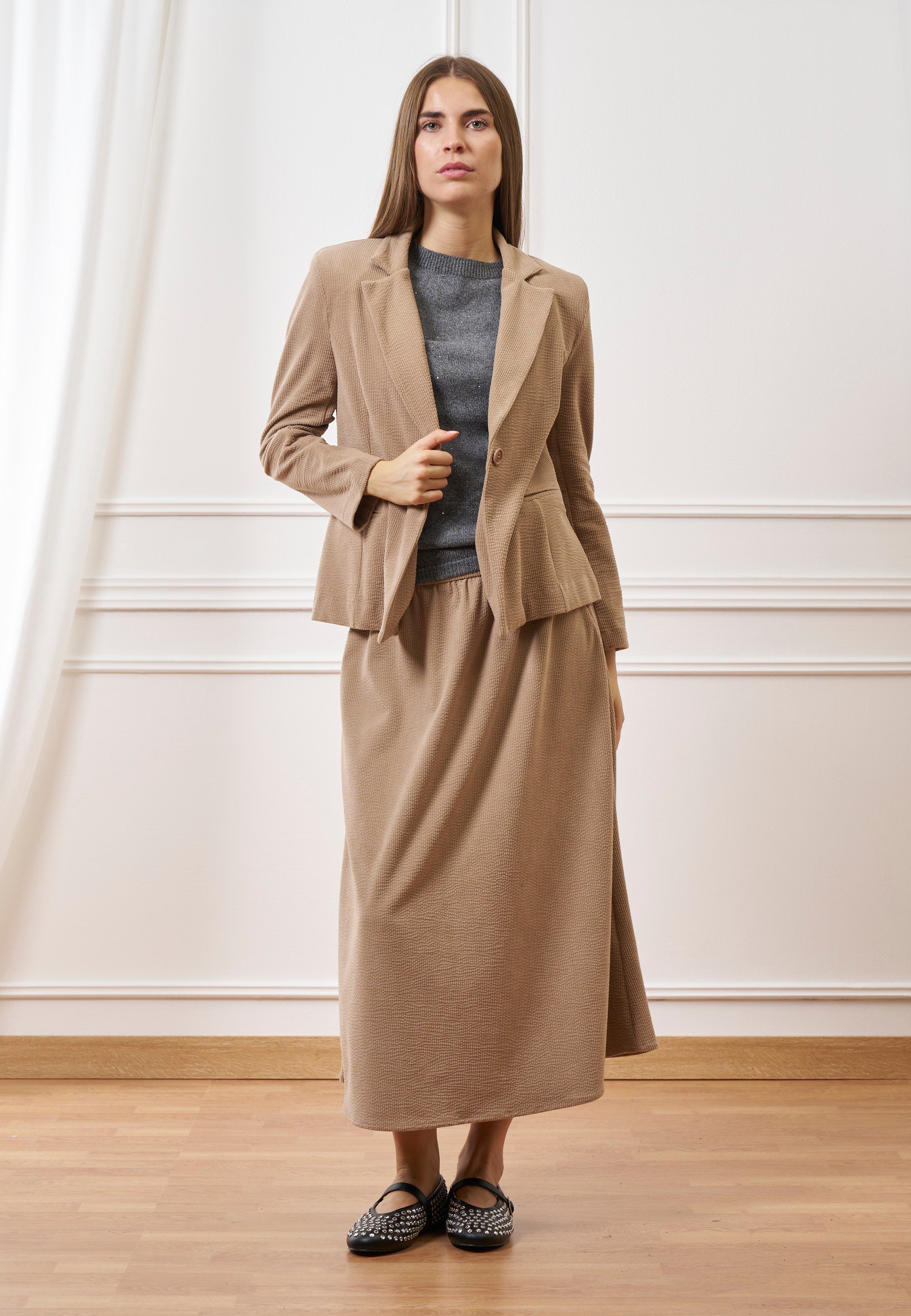 Realizzata con cura in Italia, perfetta per look femminili e sofisticati, ideale da abbinare alla giacca coordinata.