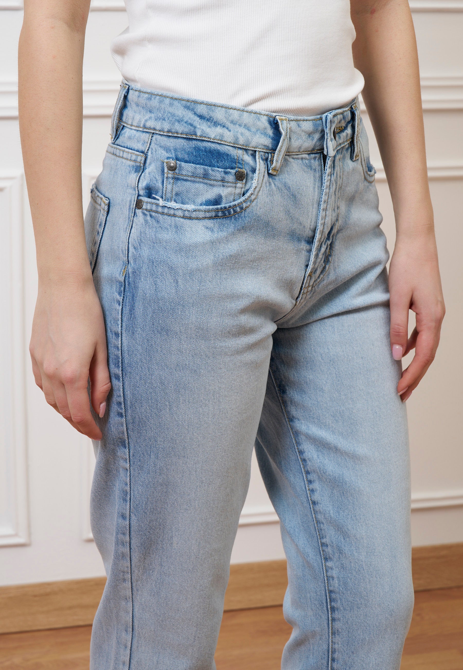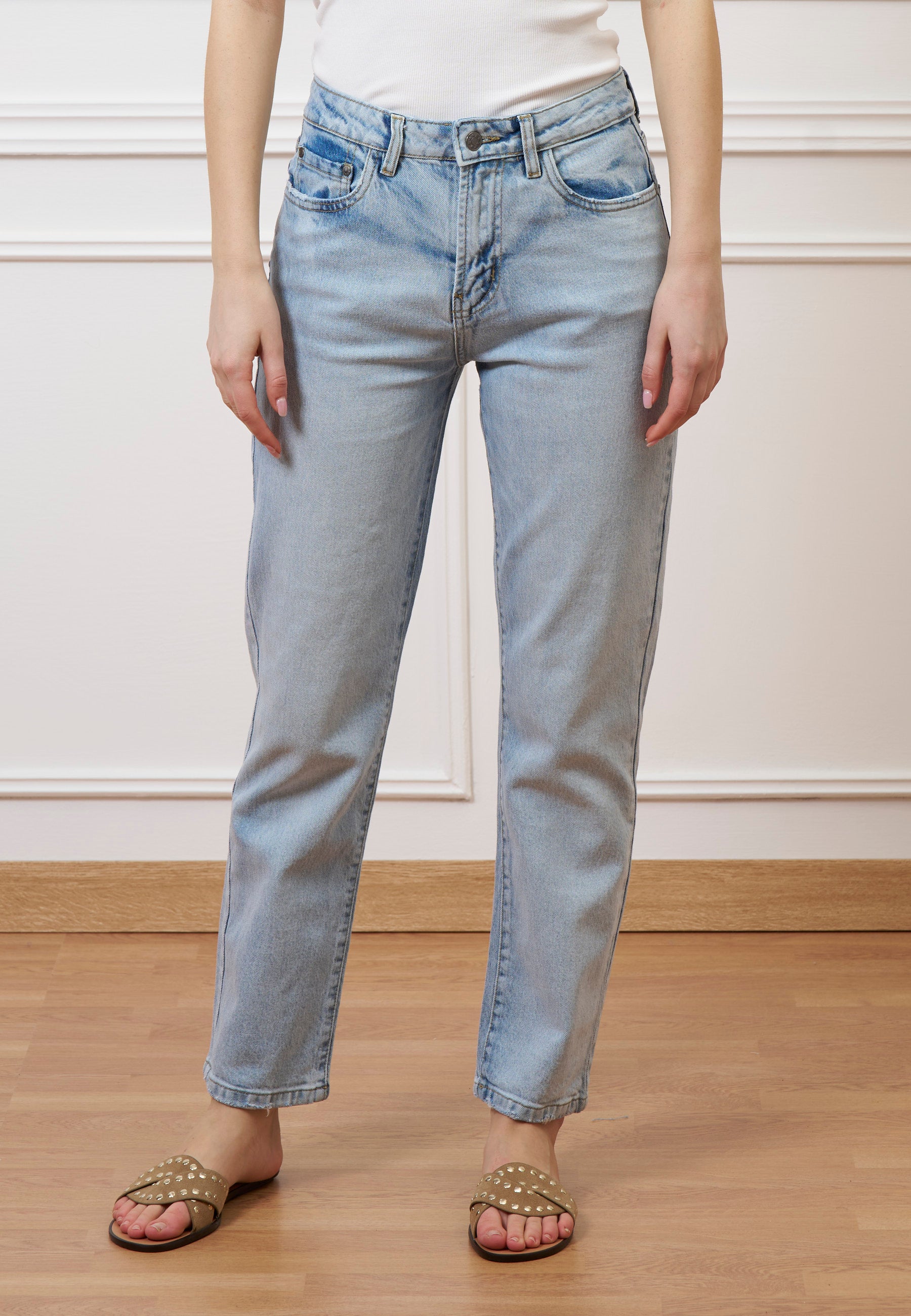 Jeans dritti a vita alta - JEANS CHIARO