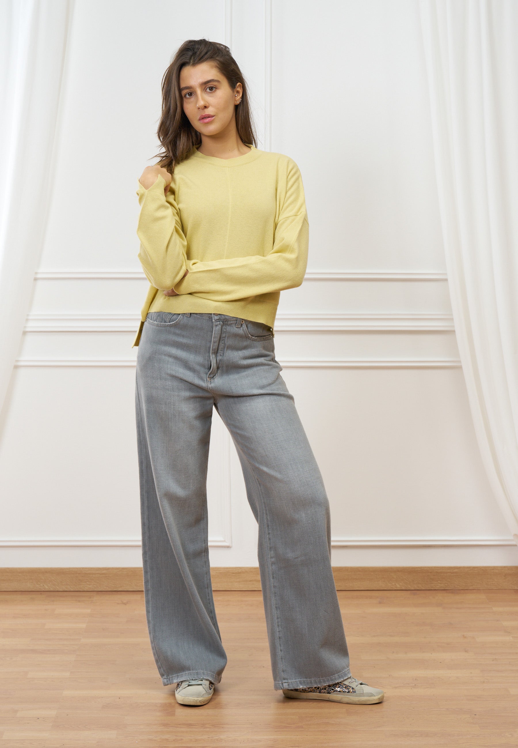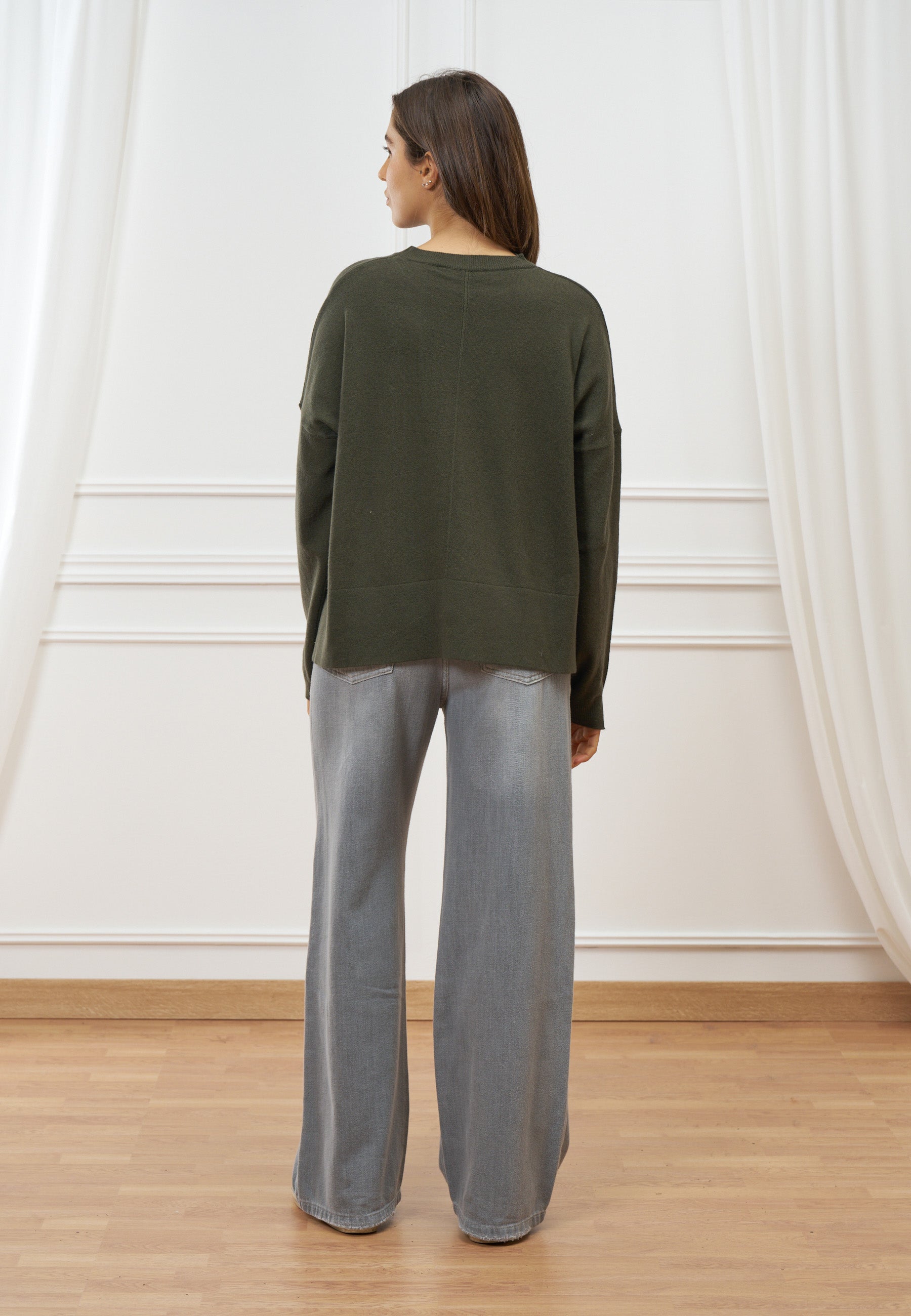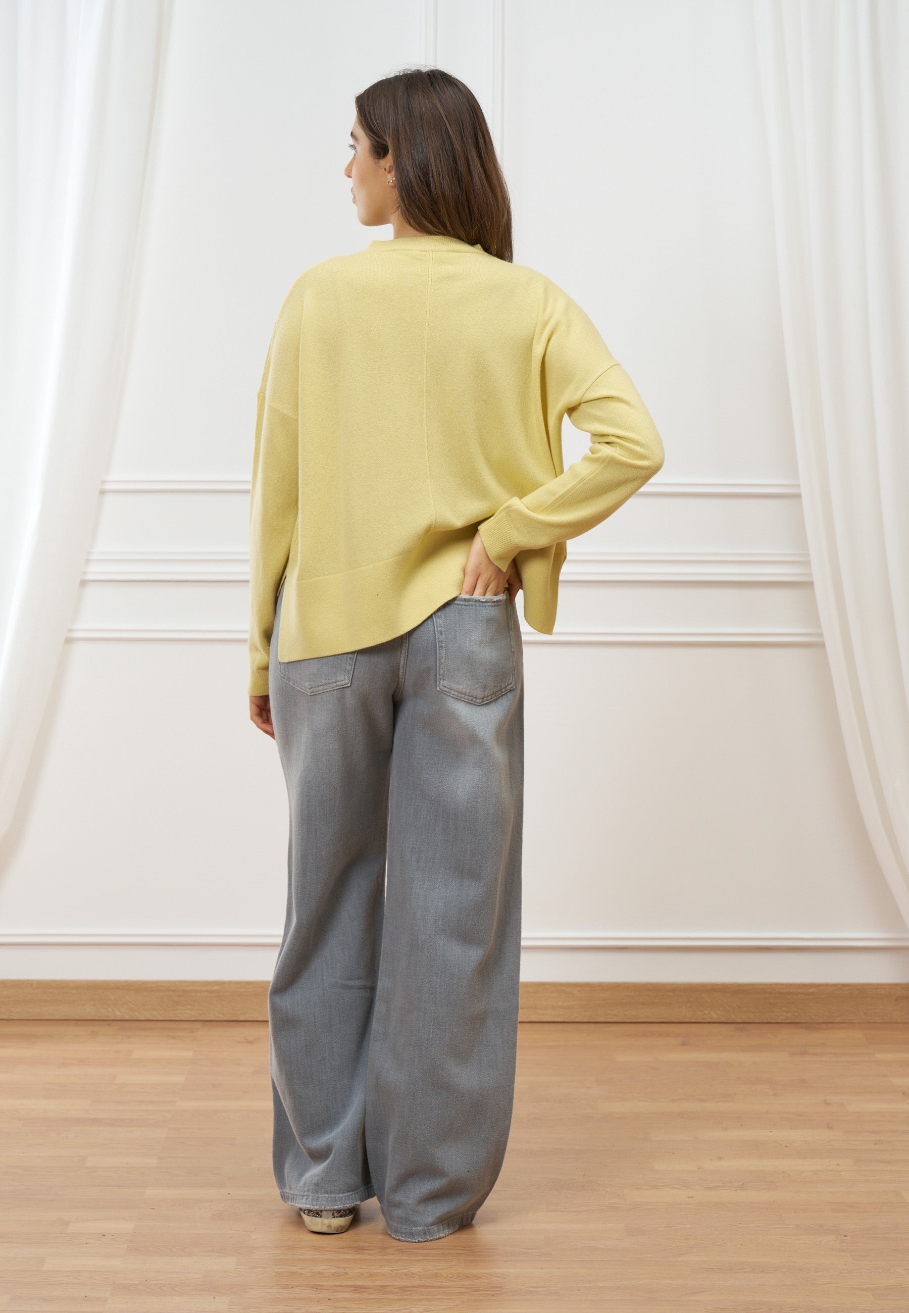 Stile contemporaneo e calore naturale si incontrano in questa maglia in lana caratterizzata da delicate nervature che donano movimento e raffinatezza al capo.
