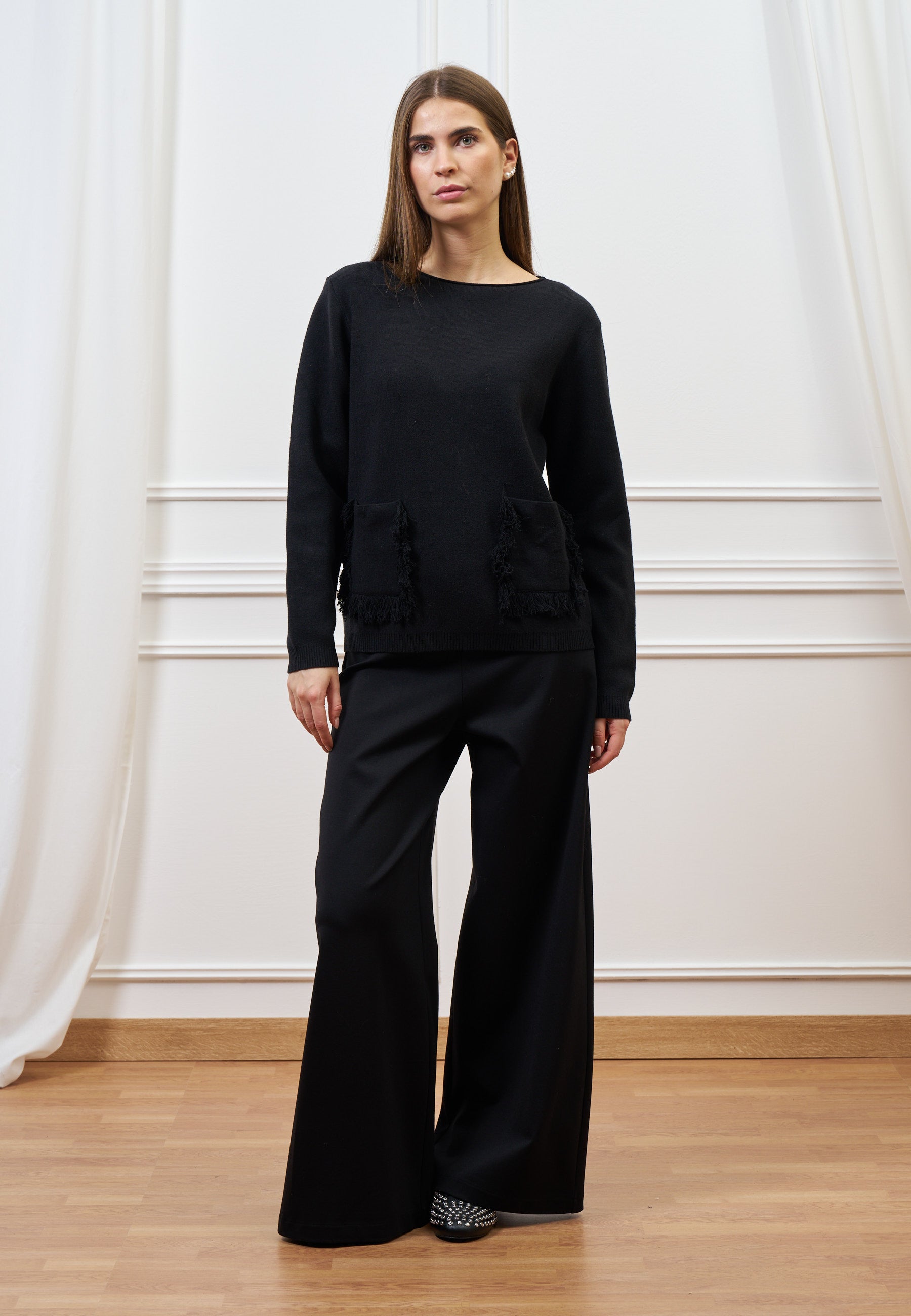 Maglia con tasche sfrangiate