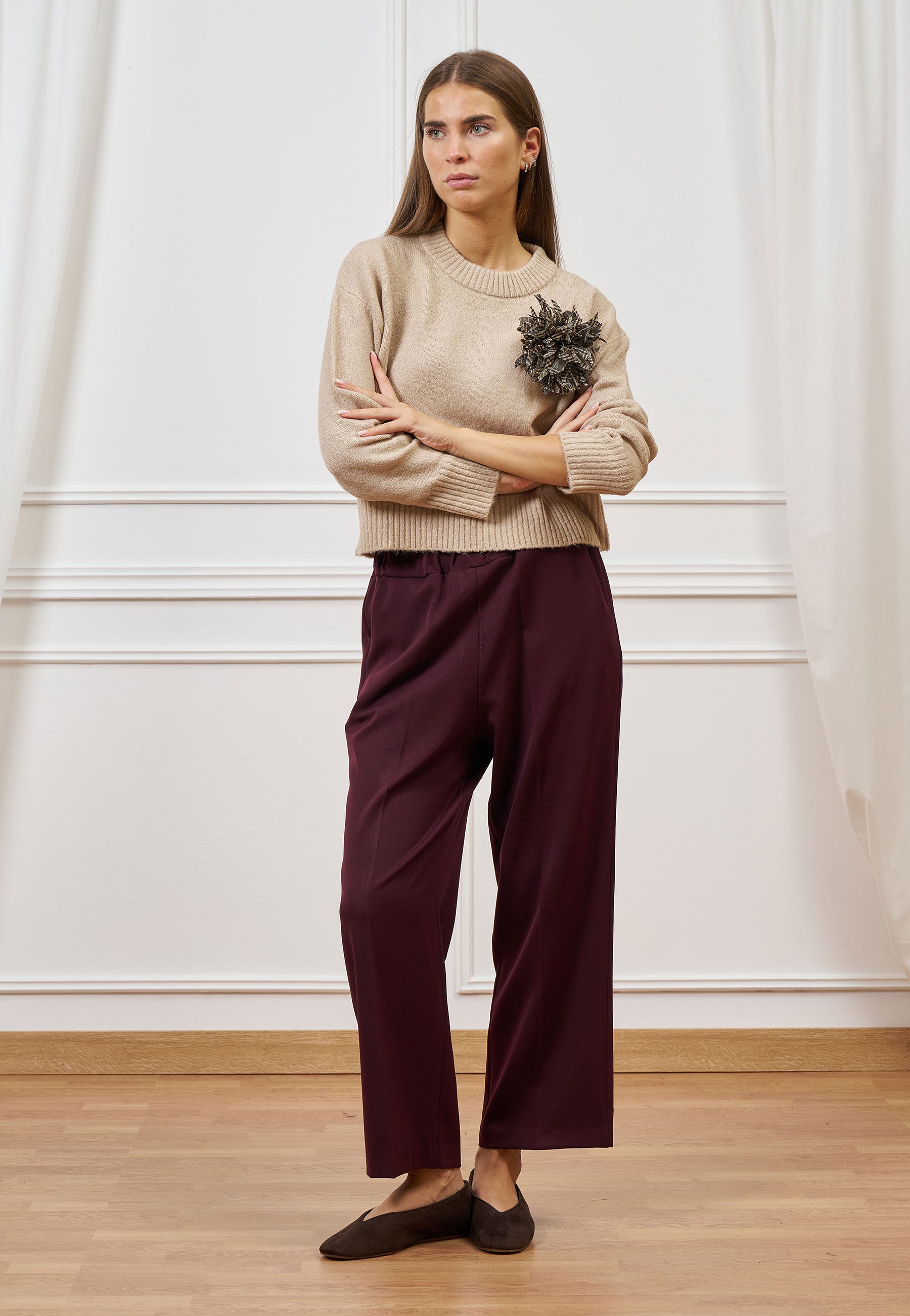 Il pantalone cropped unisce comfort e praticità grazie al taglio morbido e all’elastico in vita, ideale per i tuoi look casual.