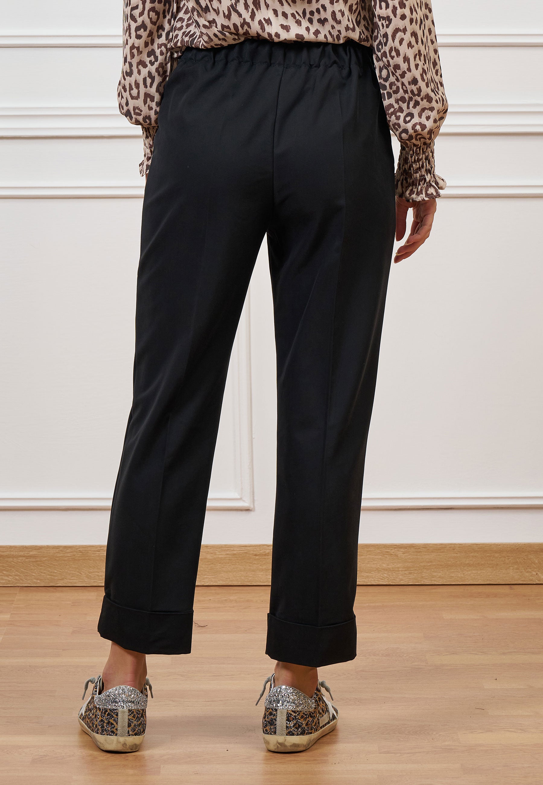 Il pantalone cropped unisce comfort e stile grazie al taglio morbido e alla linea moderna con risvolto sul fondo.