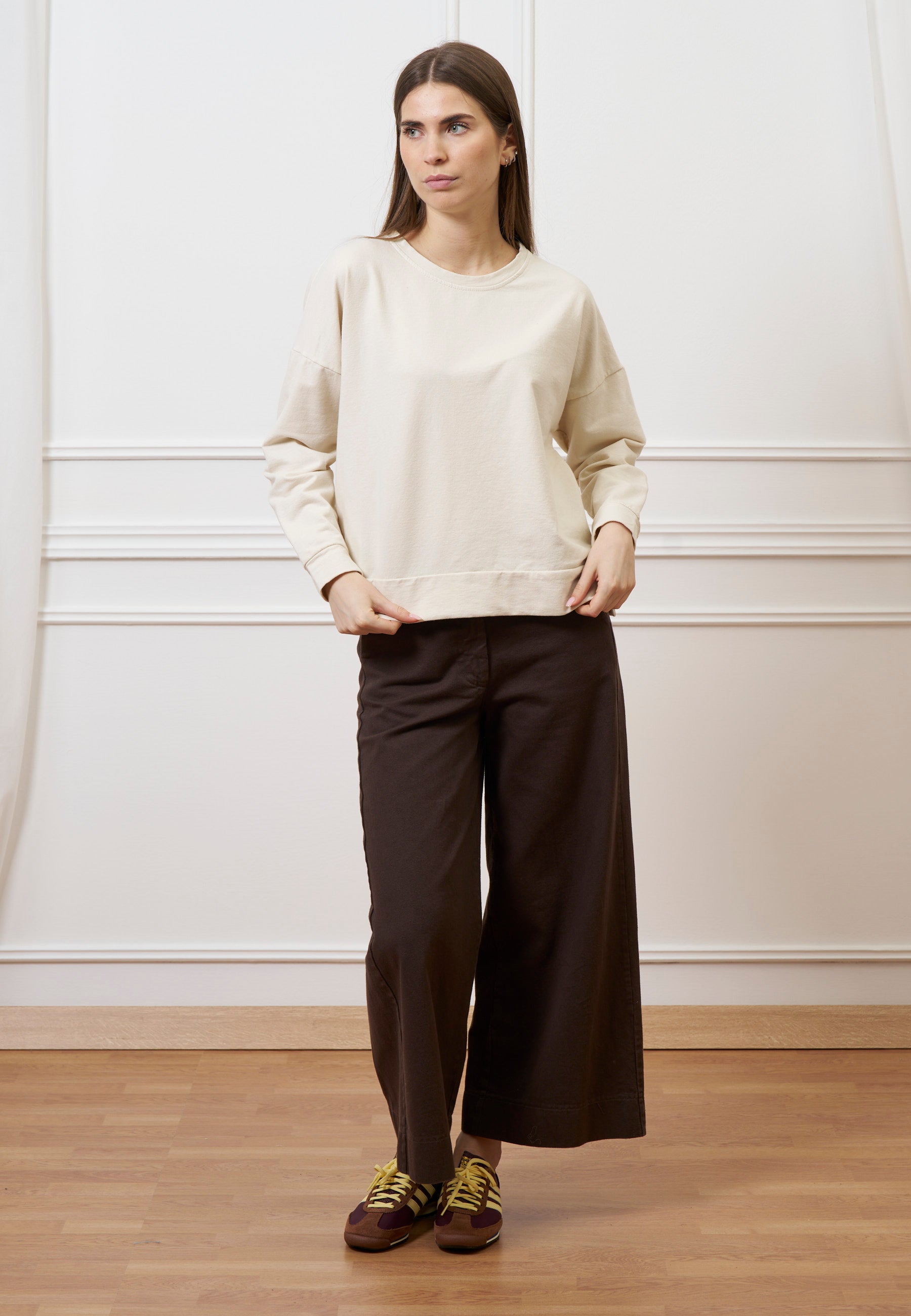 Linee moderne caratterizzano questo pantalone cropped, pensato per coniugare comfort e stile quotidiano.