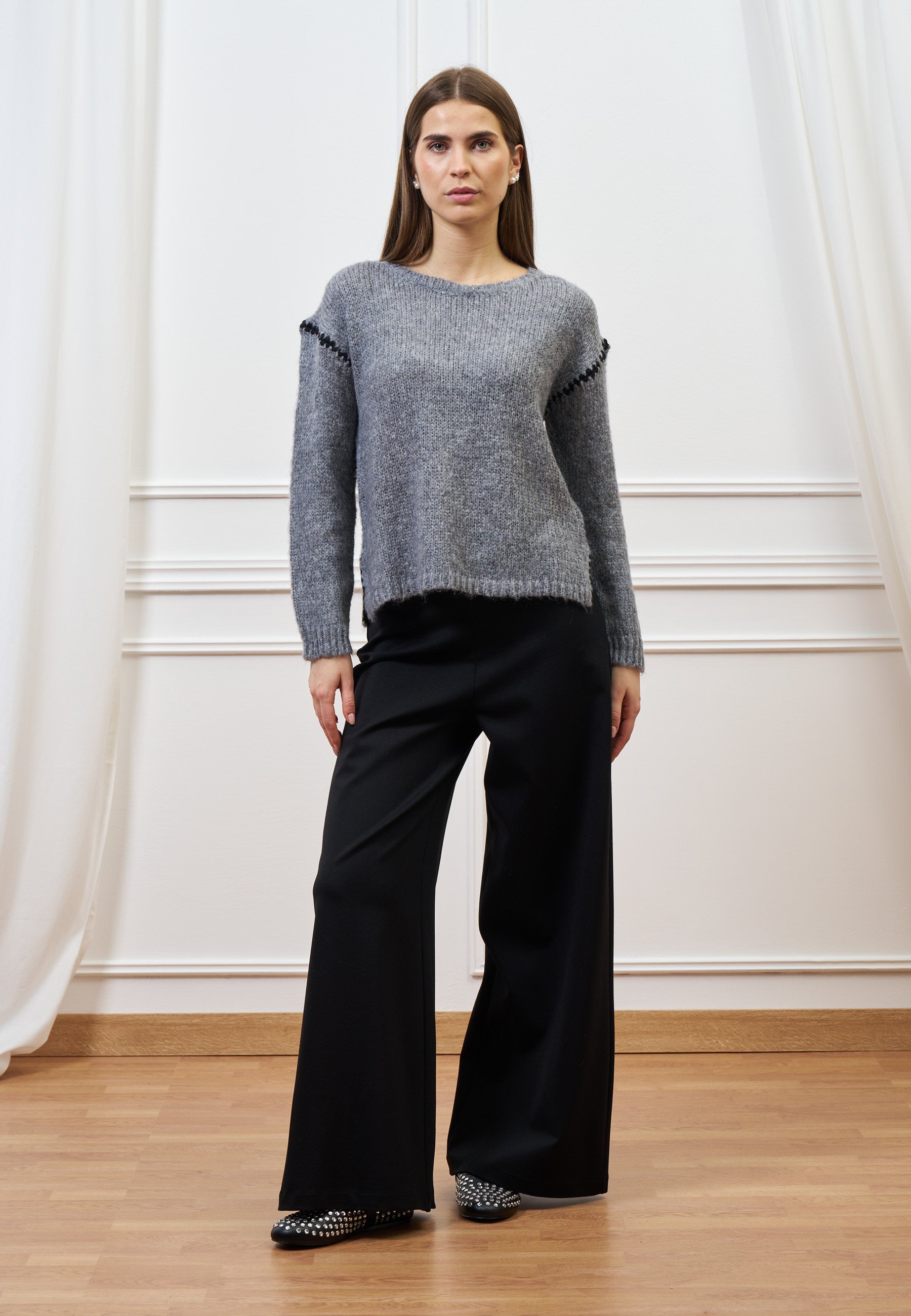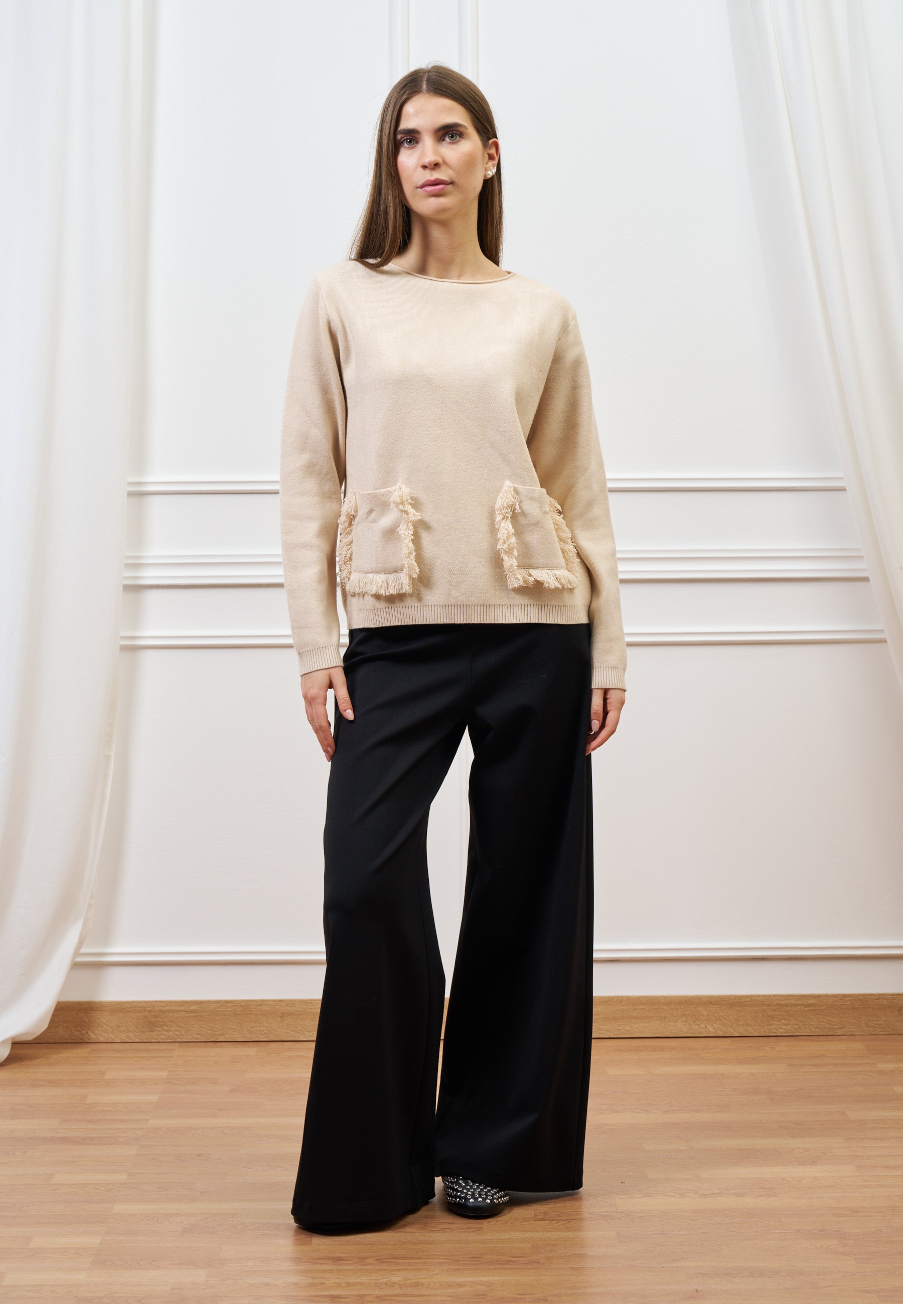 Caldo e avvolgente, questo pantalone palazzo in jersey offre comfort e fluidità, ideale per valorizzare la silhouette con eleganza naturale.