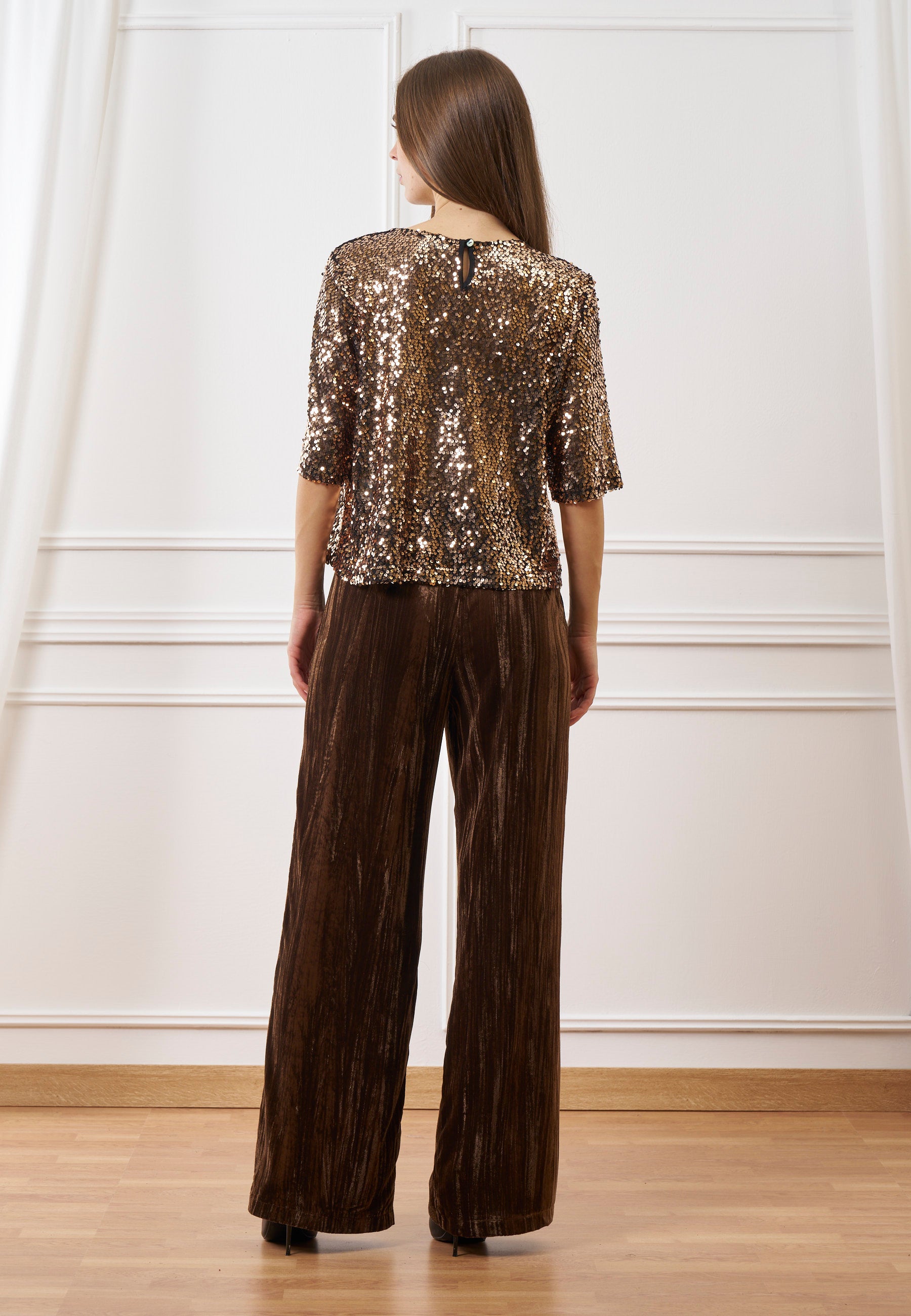Pantalone palazzo in velluto martellato