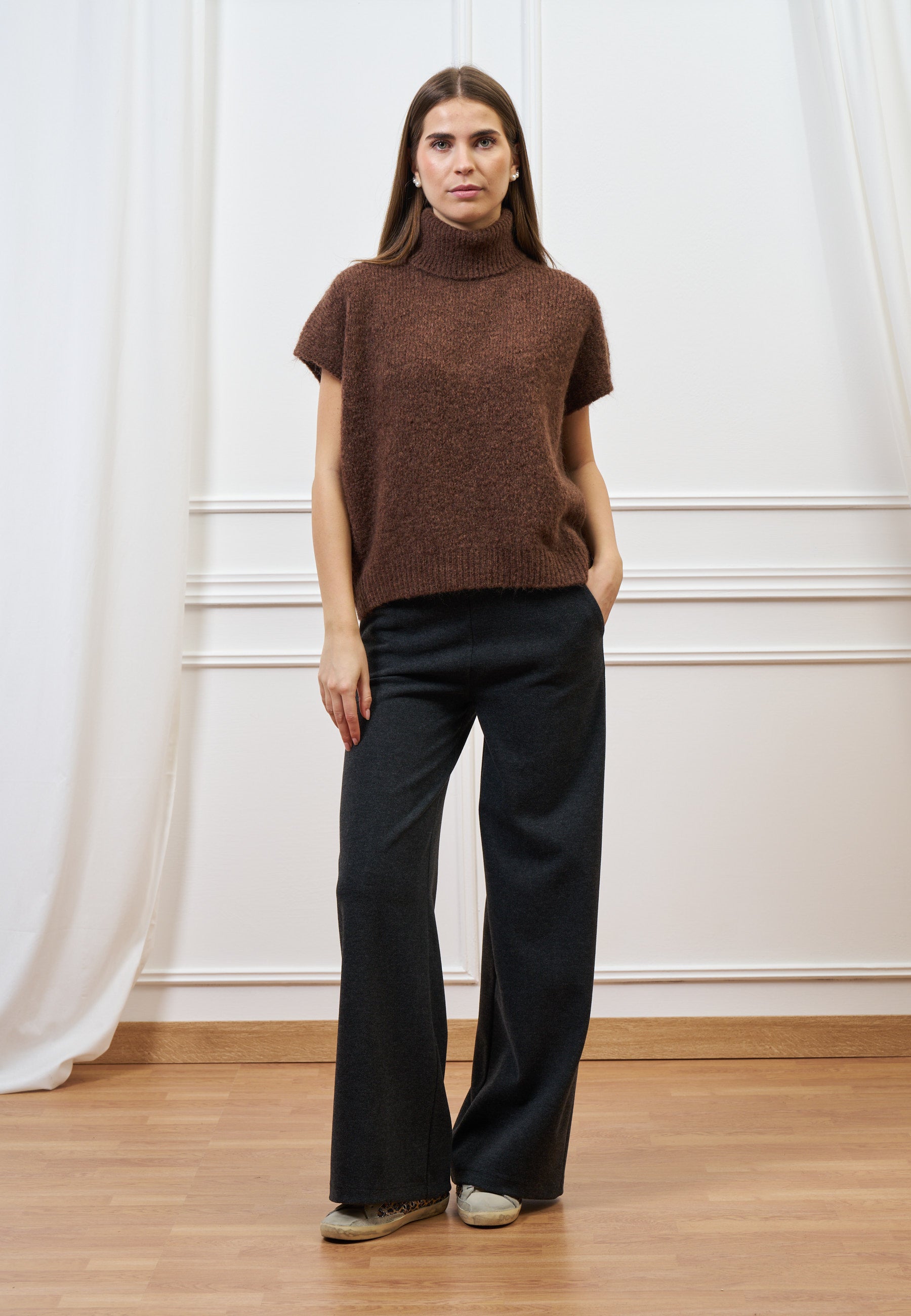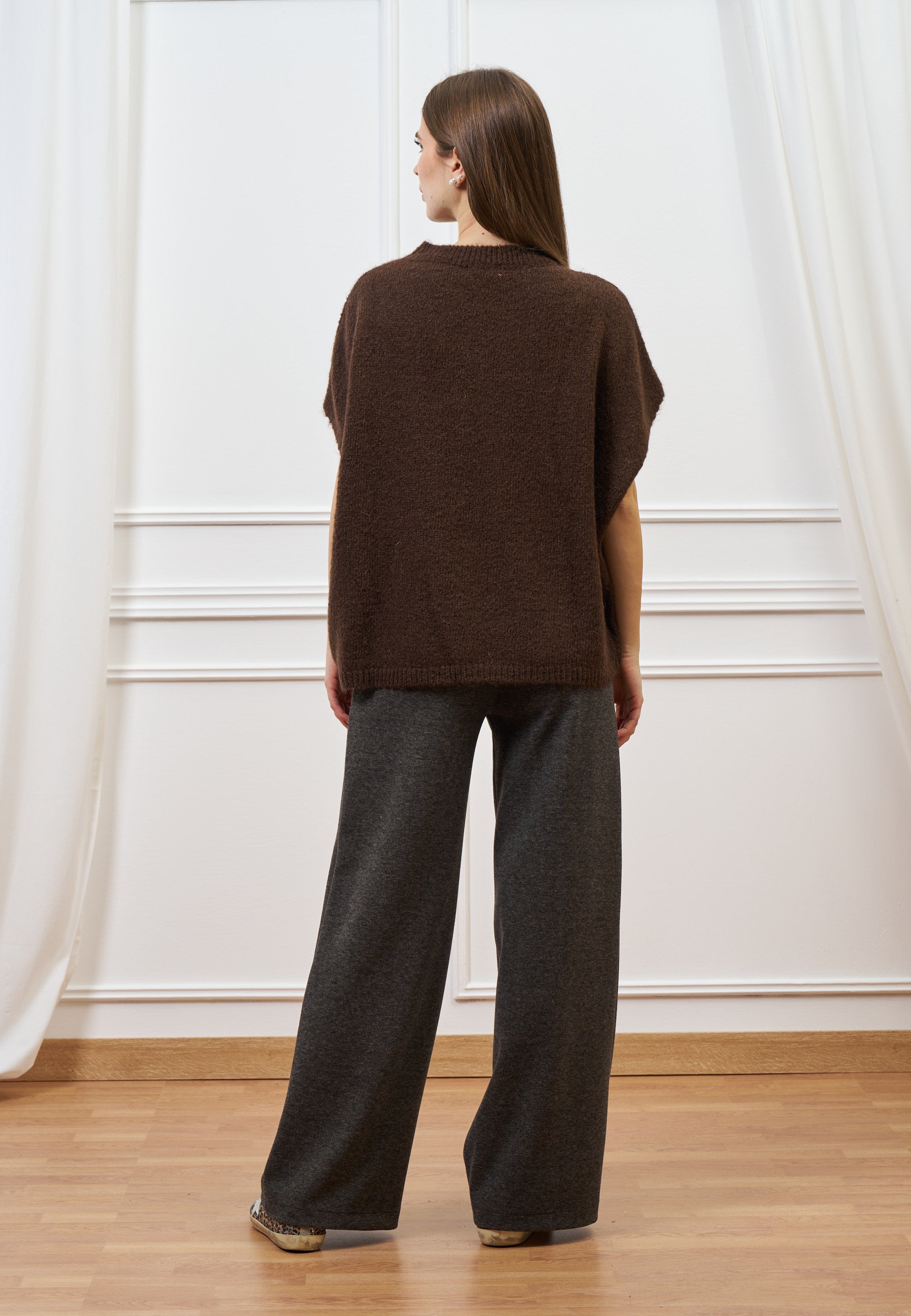 Caldo e avvolgente, questo pantalone palazzo in tessuto melange unisce comfort e stile grazie alla sua mano morbida e consistente.