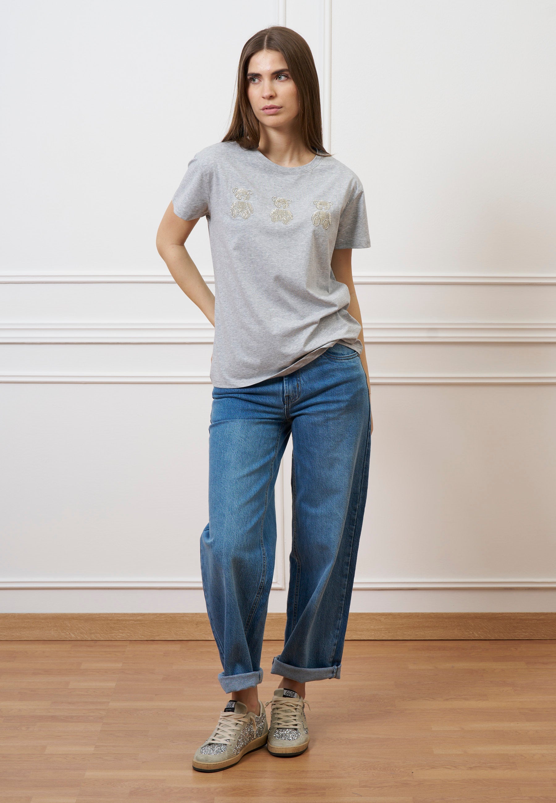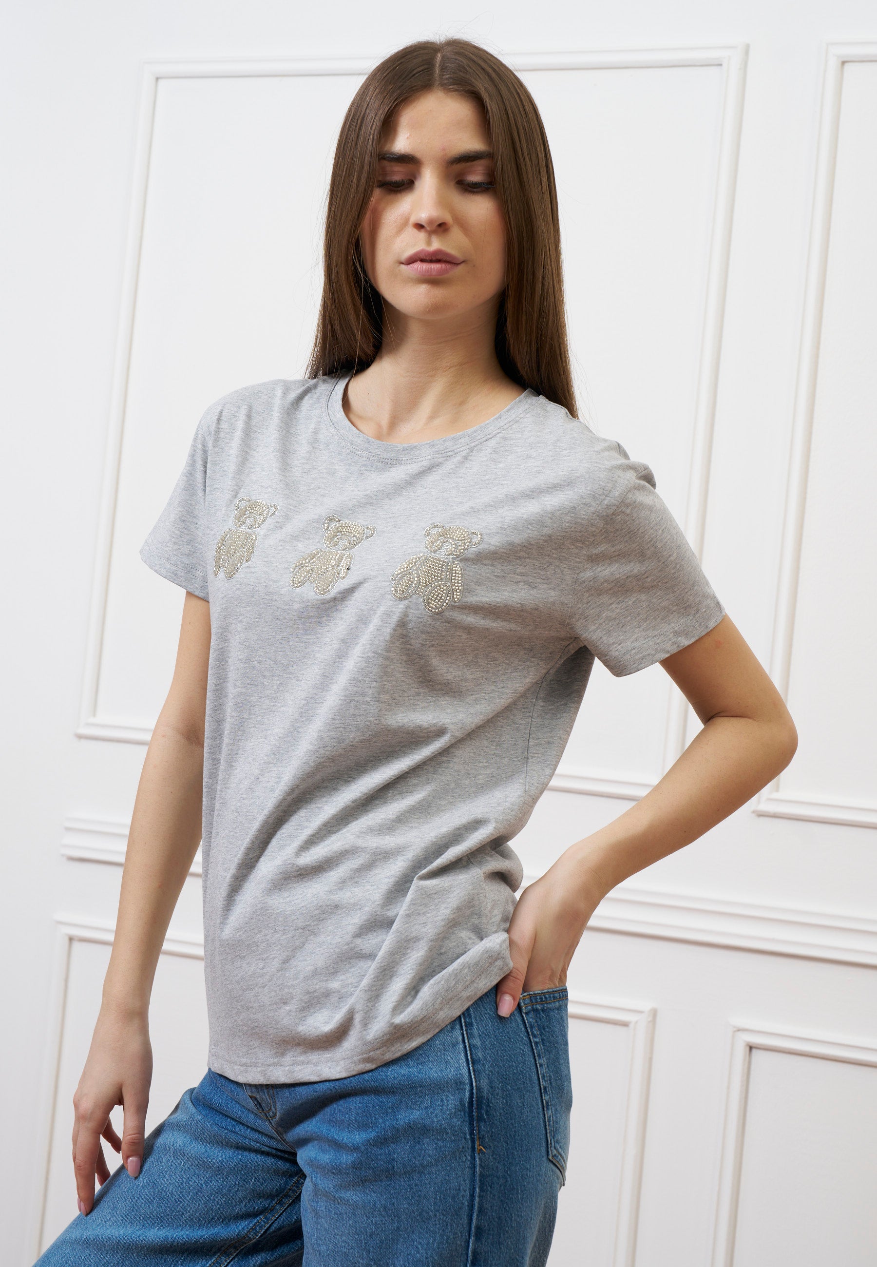 T-shirt con orsetti perline - GRIGIO MEDIO